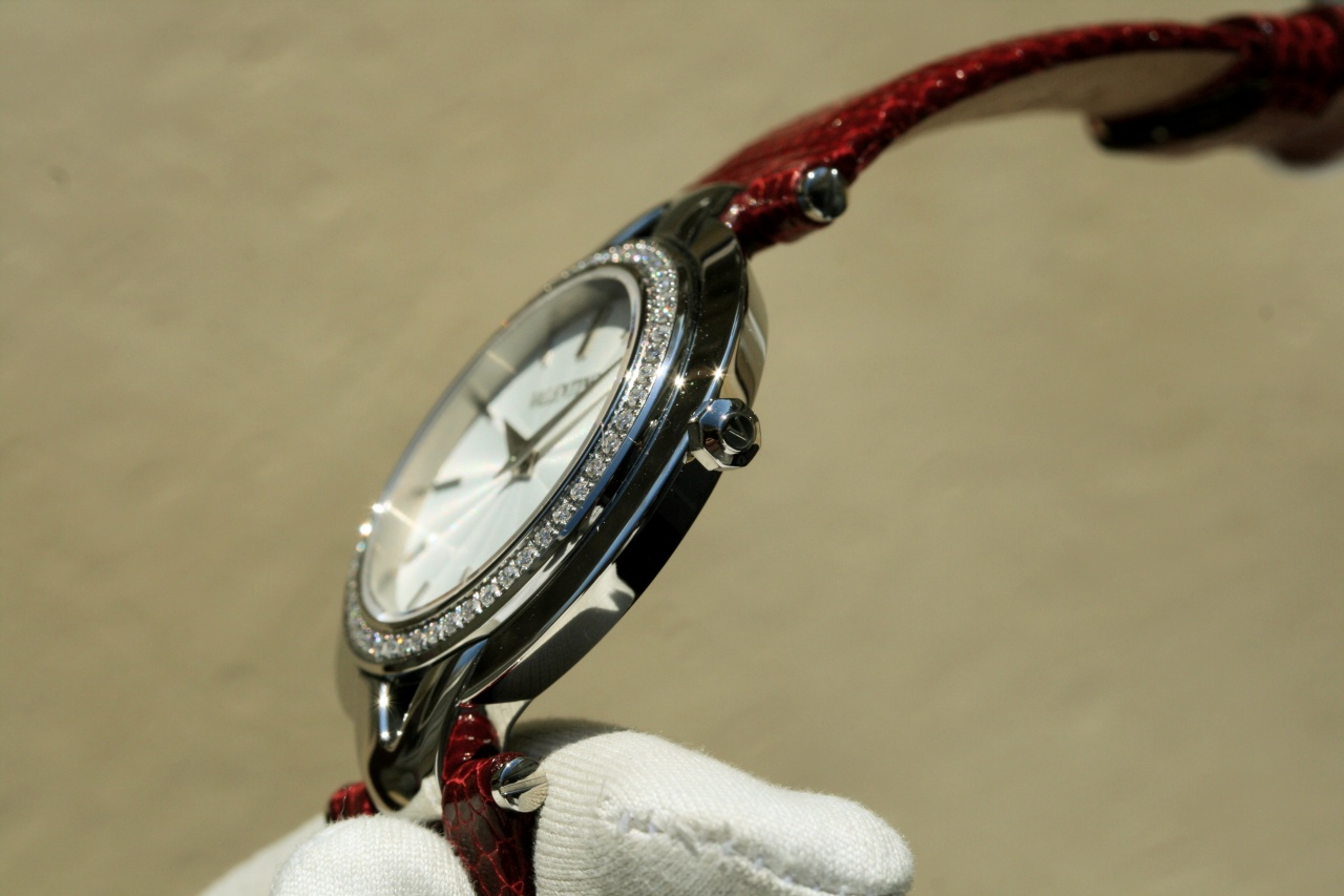- безель часов инкрустирован 54 природными бриллиантами общим весом 0.428 карата