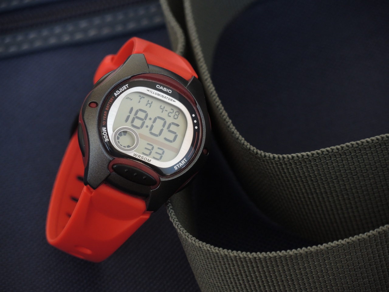 На самом деле, выбор по этим параметрам довольно невелик. И, поскольку я с самого начала смотрел в сторону Casio, то очень скоро всё свелось к одной модели - LW-200. Есть довольно много вариантов оформления этих часов - на ремешке и на браслете, с различными вариантами цветов корпуса и ремешка. Мне больше всего понравились на красном ремешке и чёрно-красным решением корпуса самих часов - LW-200-4AVEF. Их и купил.
