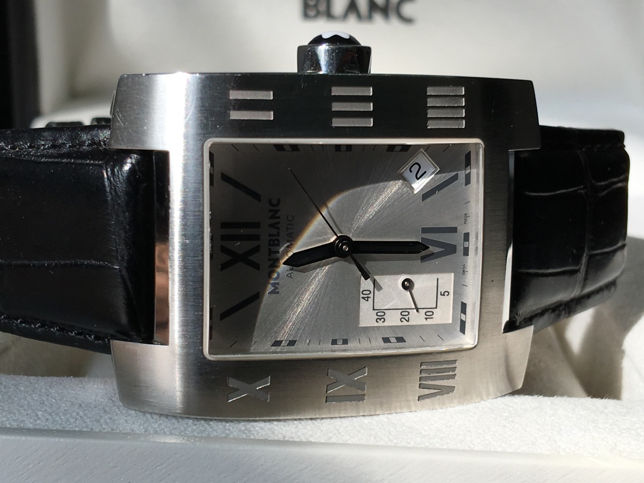 Часы в корпусе из нержавеющей стали размером 33 х 44 мм с серебристым циферблатом, автоматическим механизмом, индикаторами запаса хода и даты, каучуковым ремешком / браслетом из нержавеющей стали с тройной раскладывающейся застежкой. * Калибр: Montblanc 4810/406 * Функция: Автоматический завод * Частота колебаний баланса/Количество камней: 28800 пк/час, 21 камень * Материал: Сталь * Сапфировое стекло: Выпуклое сапфировое стекло с антибликовым покрытием * Задняя крышка: Задняя крышка из нержавеющей стали * Заводная головка: Незавинчивающаяся заводная головка, 1 кольцевая прокладка * Циферблат: Черный циферблат * Стрелки: Стрелки в форме палочек * Расстояние между ушками: 24 мм * Диаметр: 33 х 44 мм * Толщина: 12,5 мм * Водонепроницаемость: 3 бара (30 м) * Материал/Цвет: Кожаный ремешок * Застежка: Тройная раскладывающаяся застежка