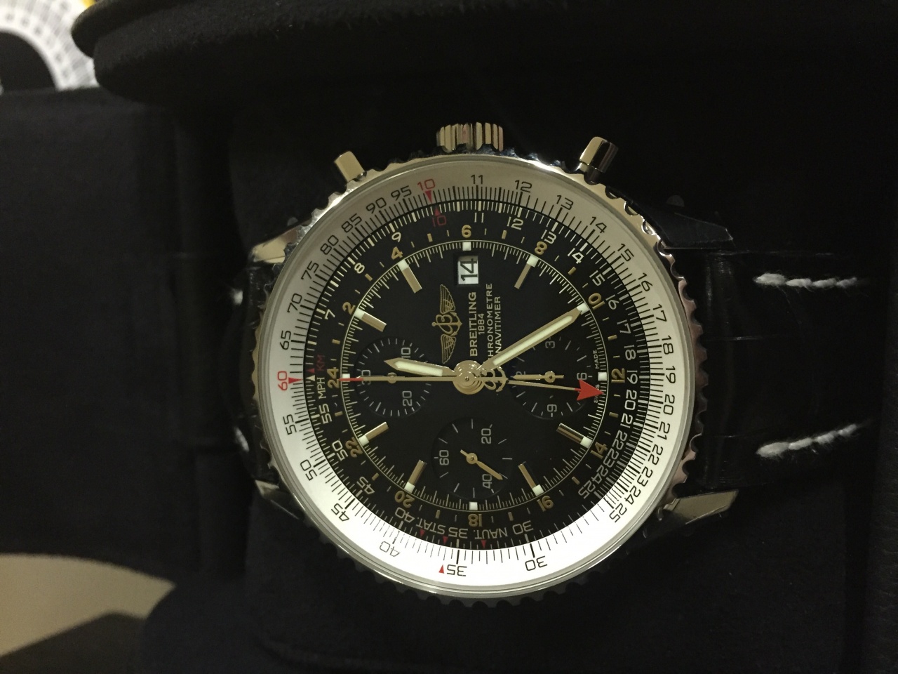 Breitling Navitimer World A2432212/B726 на черном кожаном ремне