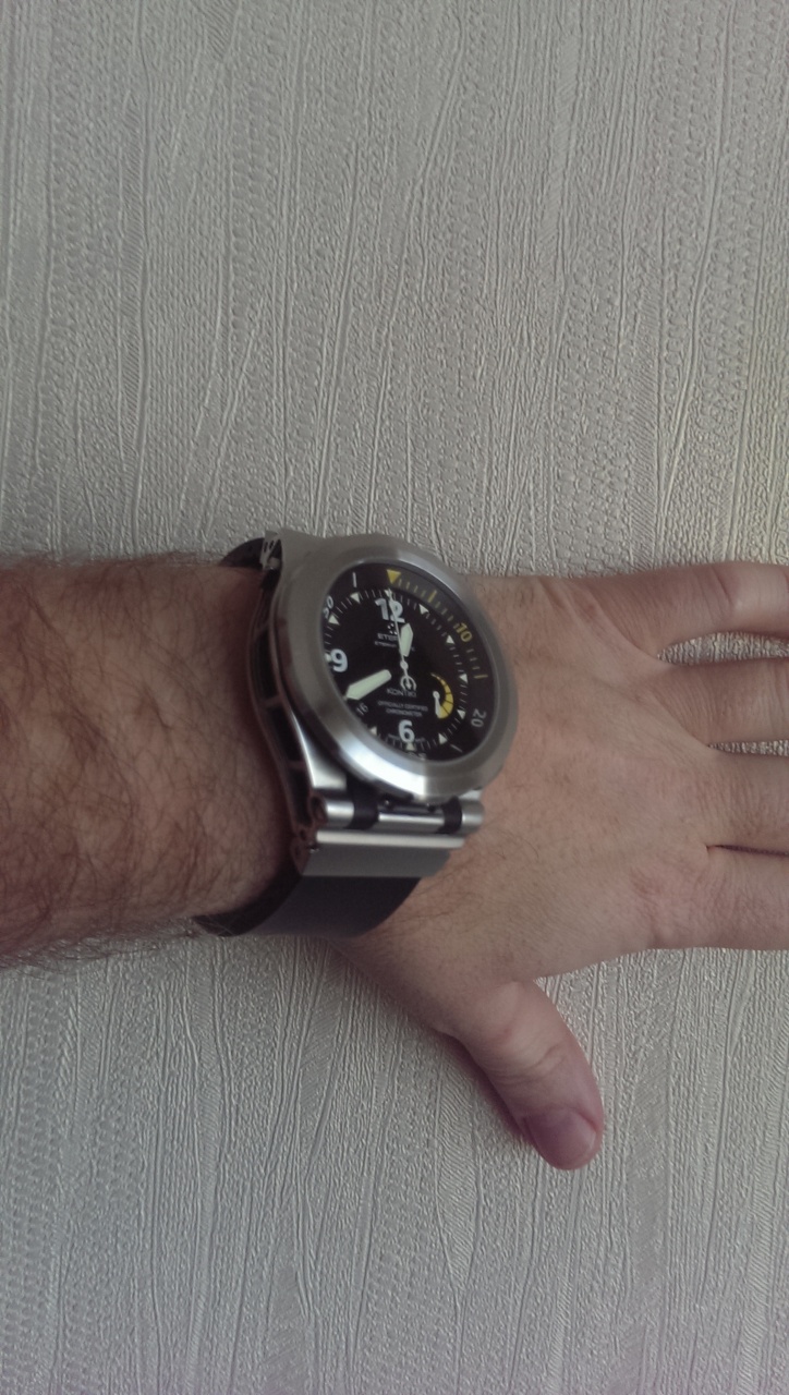 Часы в отличном состоянии (незначительные следы носки), с полным комплектом. Каучук подрезан на руку 18,5 см.