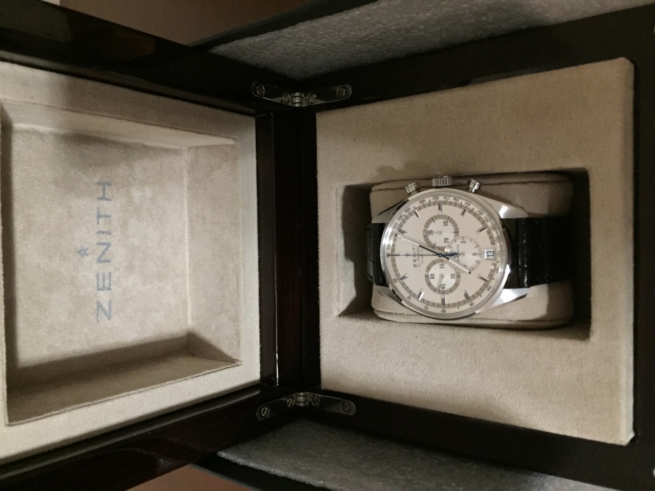 Продаю Zenith El Primero. Ref. 03.2040.400. C хронографом. Были получены в подарок, носил их месяц. Состояние идеальное. Ремешок менять не нужно. Полировать не нужно. Профилактика не нужна. Ход отличный. Наверное, можно найти какие-то естественные микроцарапины под лупой от месячной носки, но я ничего не вижу. Полный комплект - коробка, документы.