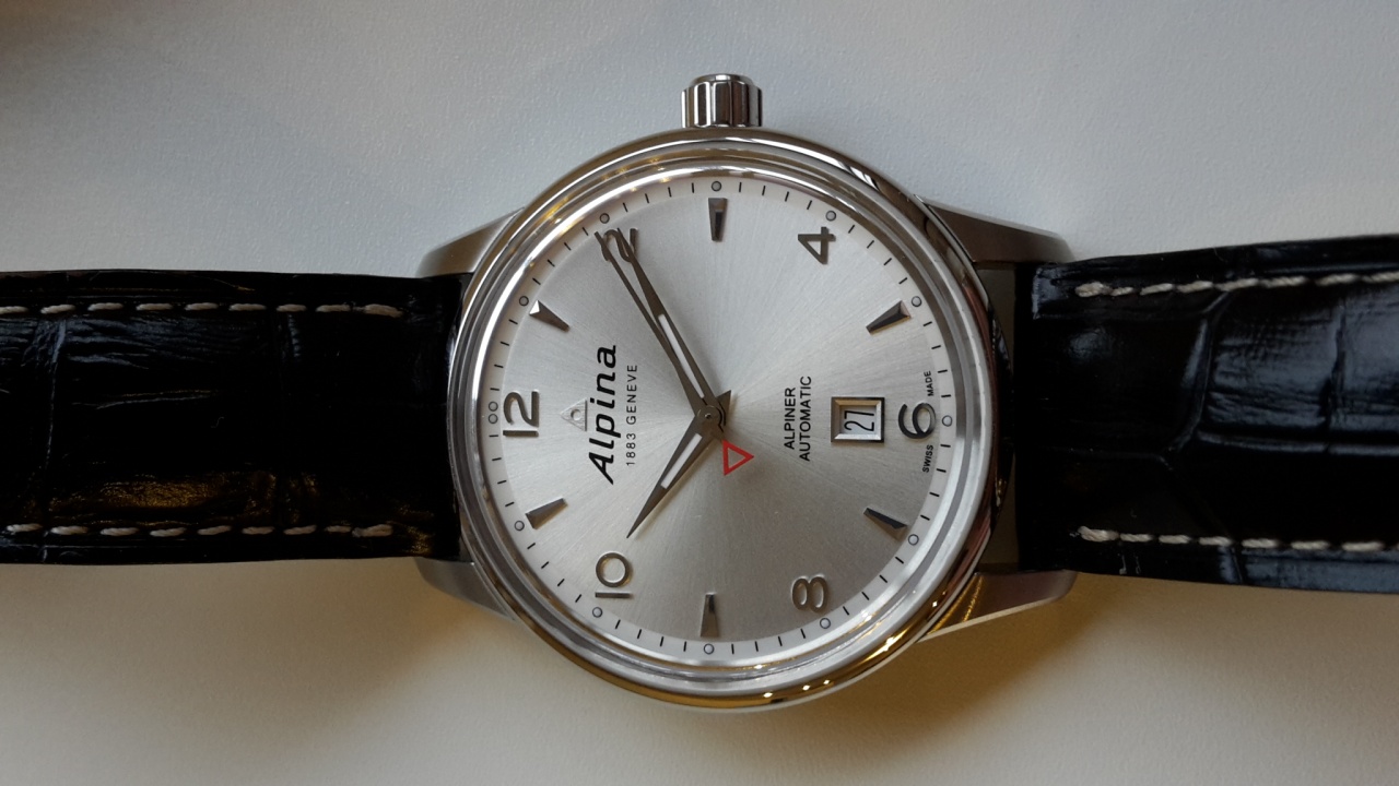 Часы очень качественно исполнены. Циферблат "sunray", с малозаметным "тонким" лучевидным рельефом, накладные смешанные метки - придают спортивность и при этом оставляют "ретро" стиль. Смешанная полировка/сатинирование граней дают игру бликов, видно внимание к деталям. Люм при свете для незаметен, только в темноте, часы выглядят классическими, при этом люм даёт нотку спорта. На центральной стрелке акцент в виде красного лого компании ("треугольничек"). Окно даты оформлено накладной рамкой. Стекло - под ретро, выступает площадкой, с виду плоское ("под акрил"), но по факту немного выпуклое, еле заметно.
