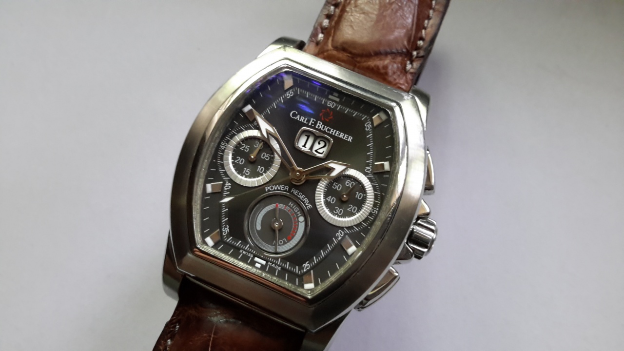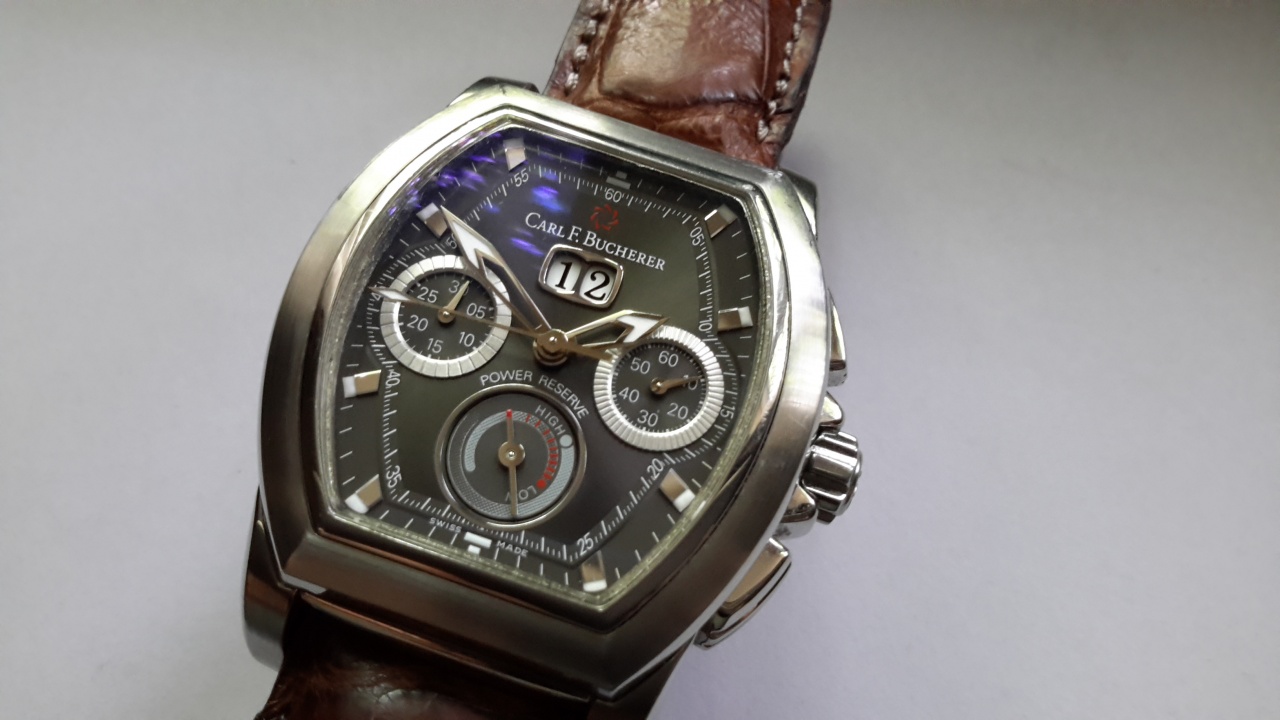 Выглядят весьма солидно и дорого,циферблат в актуальных тёмносеро-коричневых тонах,новый ремень из натуральной кожи каймана.Точный ход.