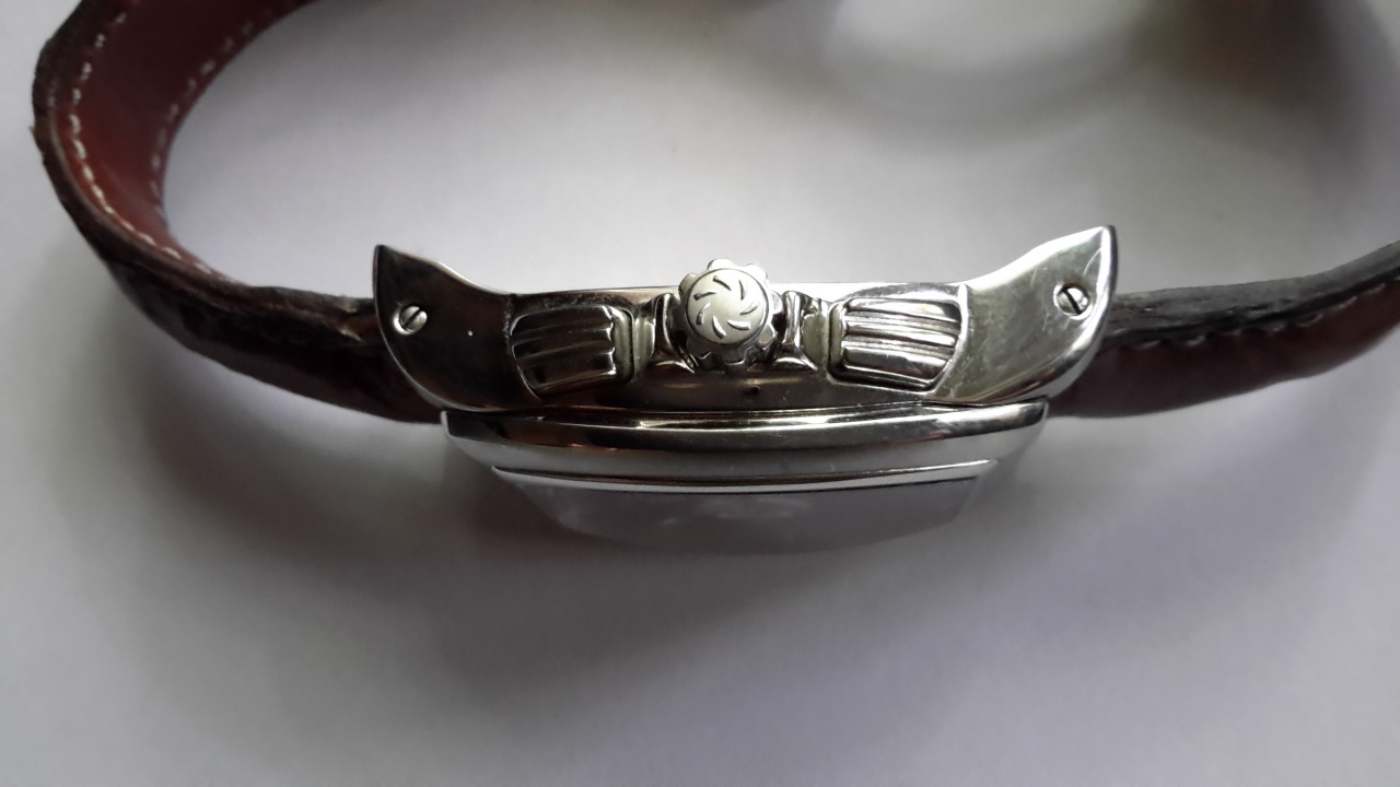 Сталь,39 х 52 мм,толщина 13,8 мм,сапфировое стекло с двойным антибликом,завинчивающаяся заводная головка,водонепроницаемость 50м,саl.1960,47 jewels