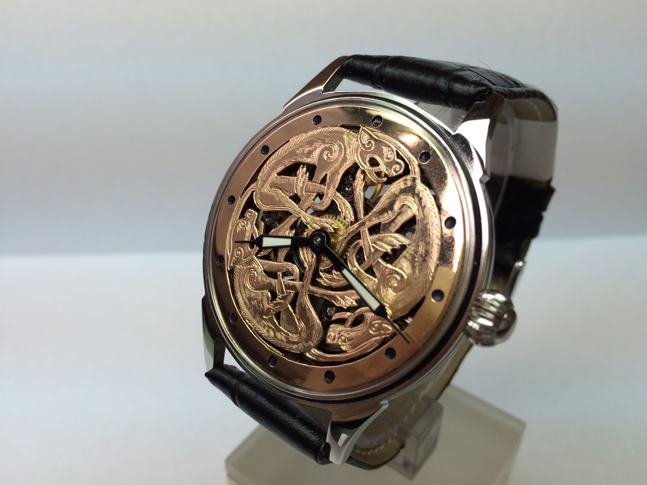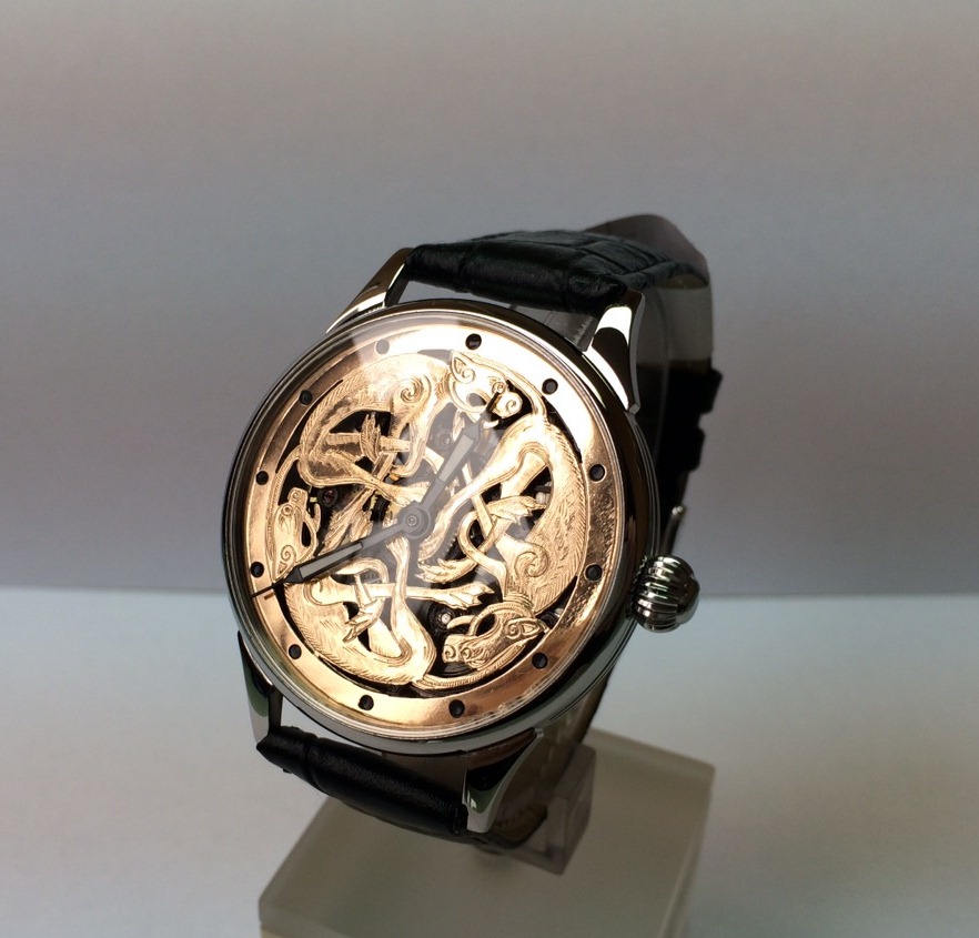 Часы ручной работы - Скелетон кропотливой ручной работы штихелем (никаких станков ЧПУ и прочих помощников), на базе советского механизма с ручным заводом на 18 рубиновых камнях.