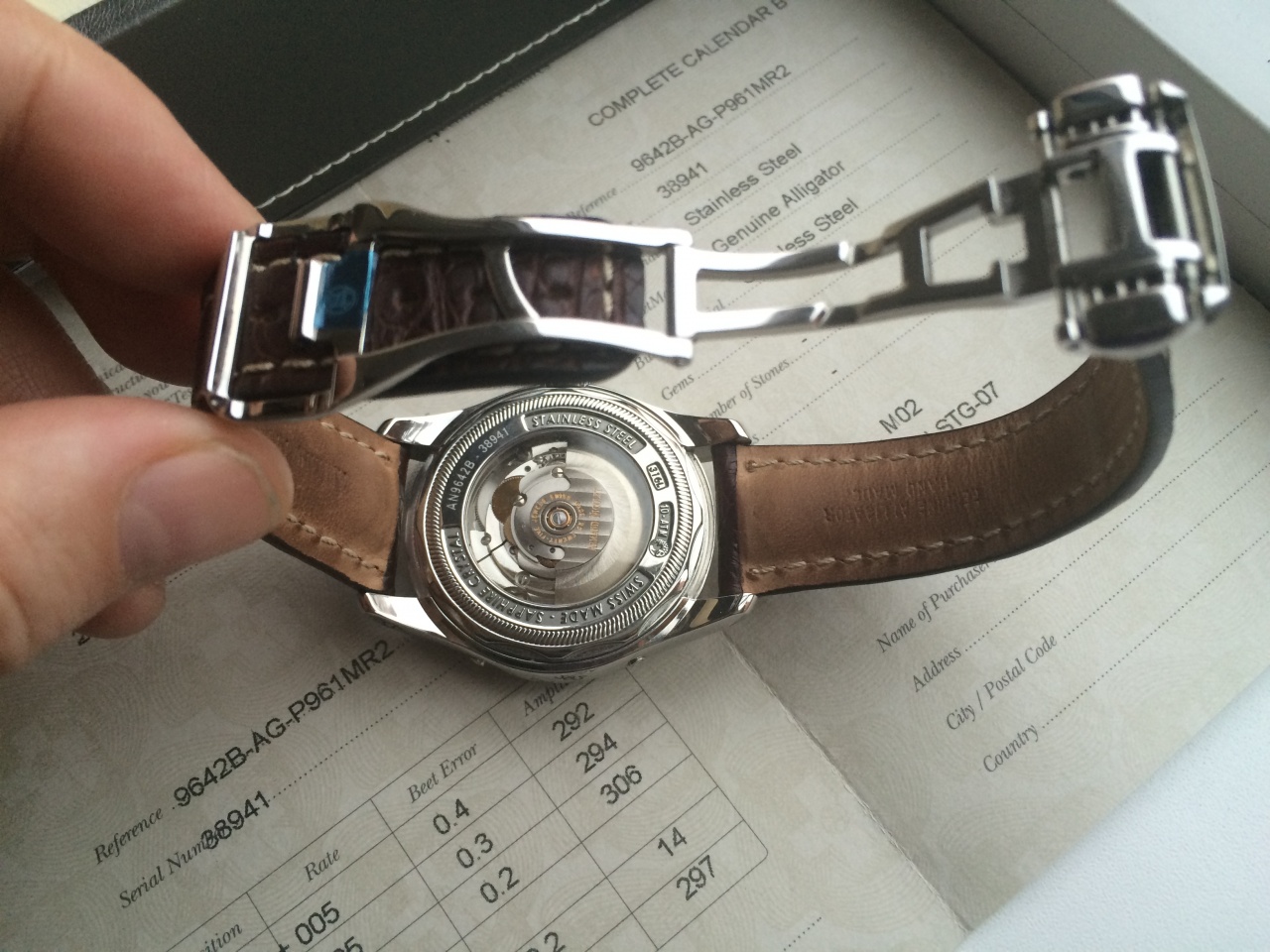 Ремешок: коричневый, из натуральной кожи крокодила, раскладывающаяся застежка.