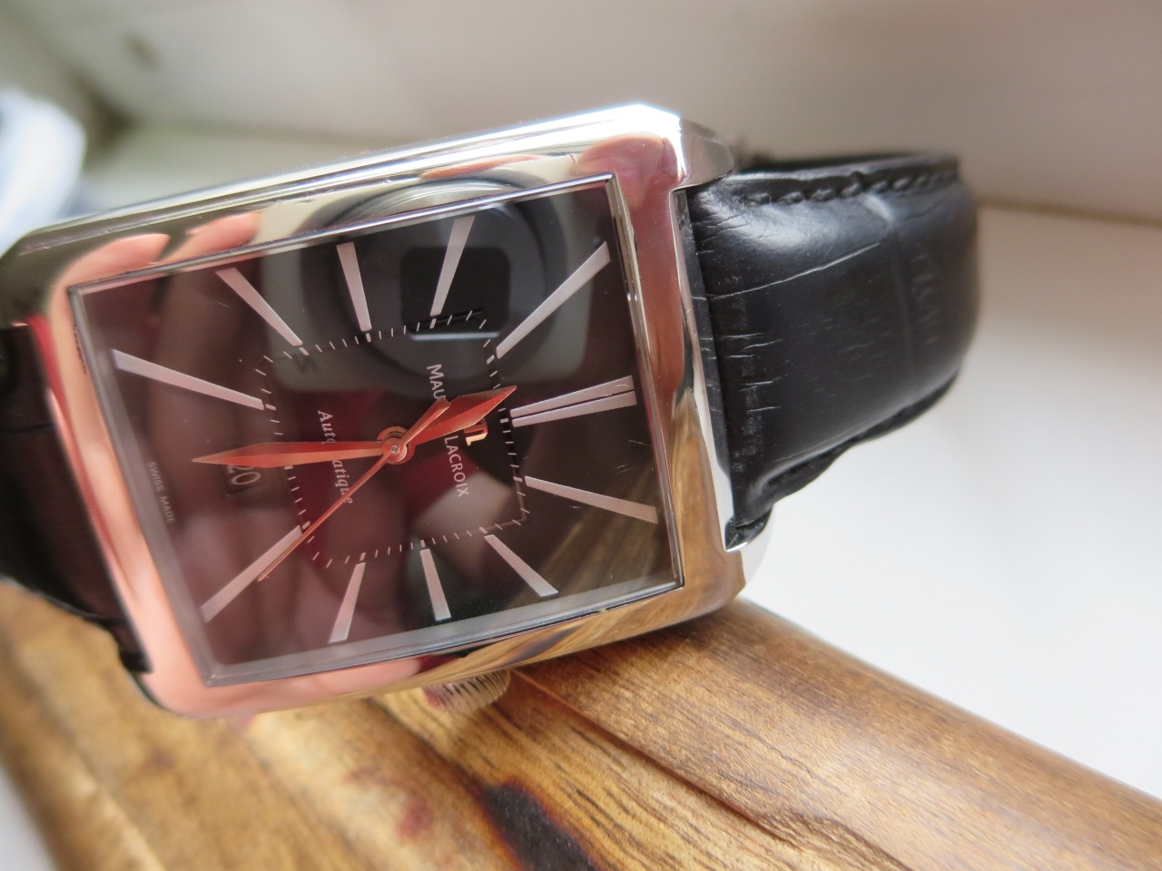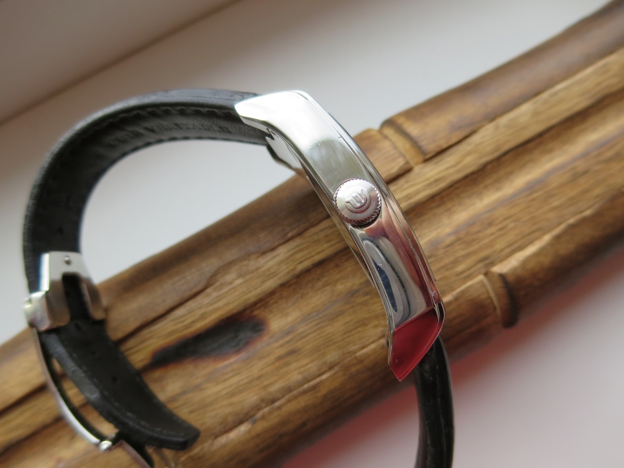 Каждая деталь в них заслуживает внимания, чего только стоит шрифт даты и его фон в цвет циферблата. Ну и прекрасная читаемость. Застежка бабочка.