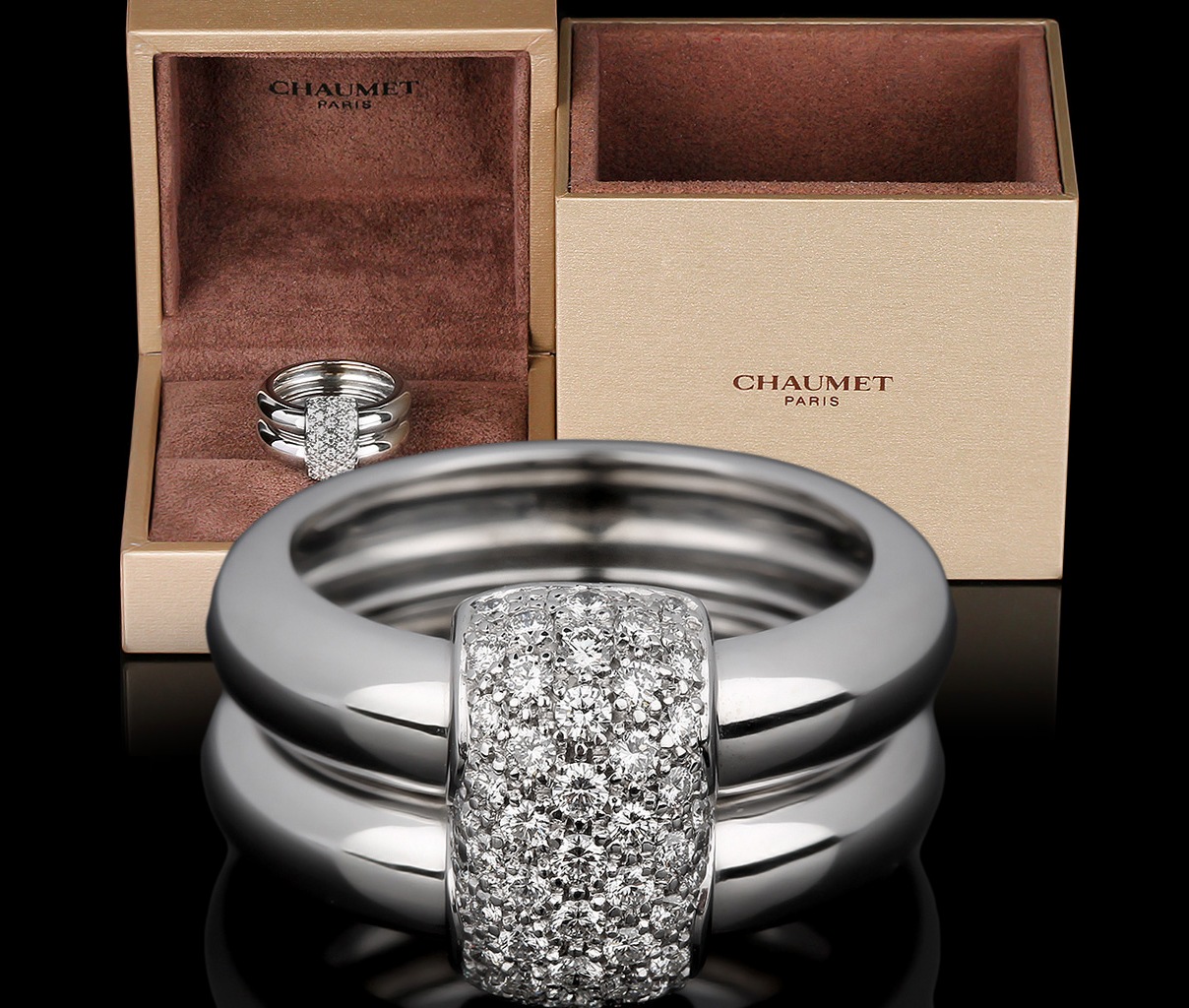 ОРИГИНАЛЬНОЕ КОЛЬЦО CHAUMET DOUBLE BAND С БРИЛЛИАНТАМИ.