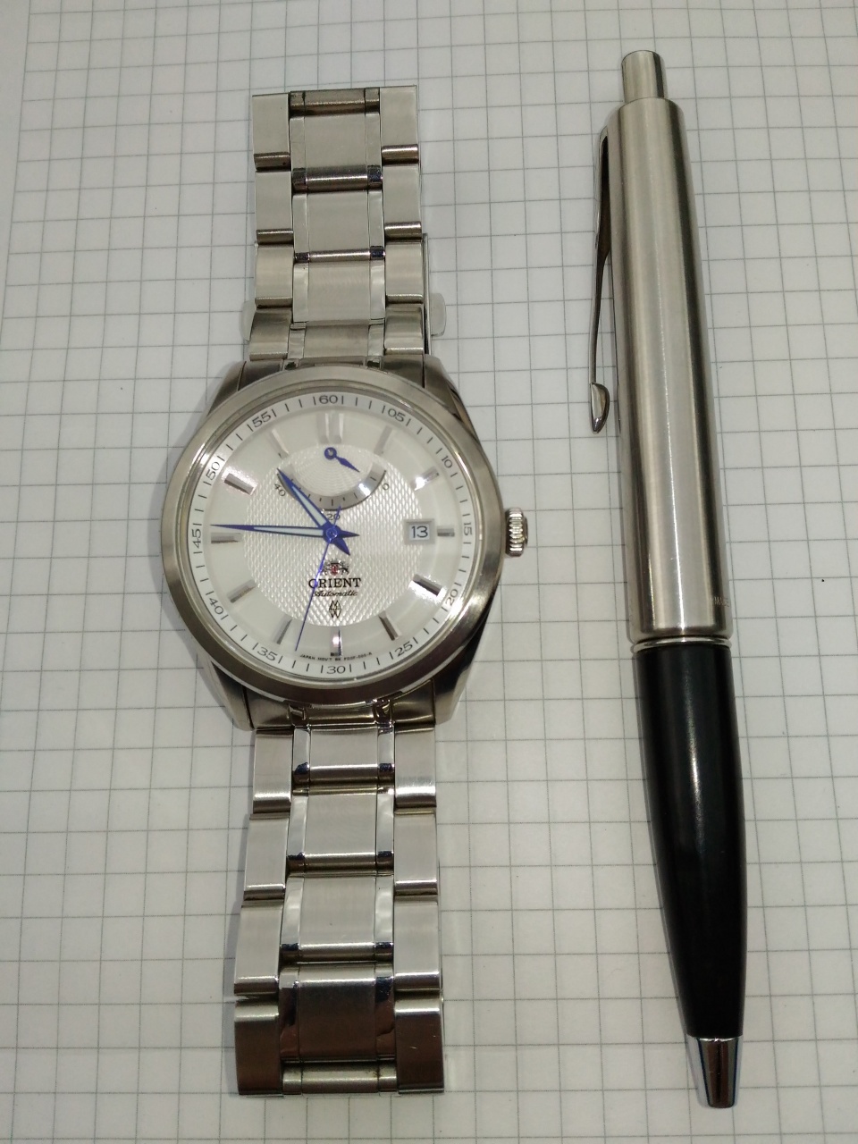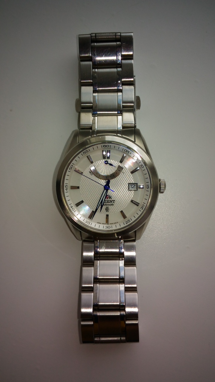 Здравствуйте. Продаю Orient ffd0f001w0 в отличном состоянии. Часы механические имеют сапфировое стекло, литой браслет, синие стрелки, индикатор запаса хода и дату. Часы далеко не единственные, носились крайне мало, последние пару лет не покидали футляра. Полный комплект: все звенья браслета, все документы.