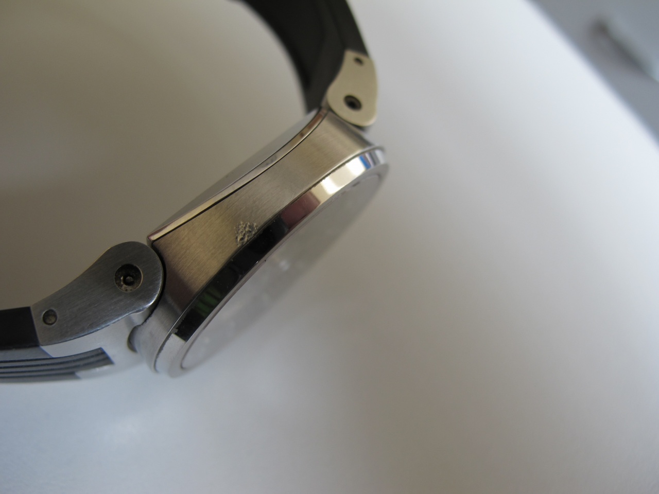 Застежка: Тройная застежка с системой блокировки и кнопкой. Состояние: очень хорошее. На корпусе в районе 8-ми часов есть небольшой дефект (на последнем фото видно), но когда часы на руке он практически не видим.
