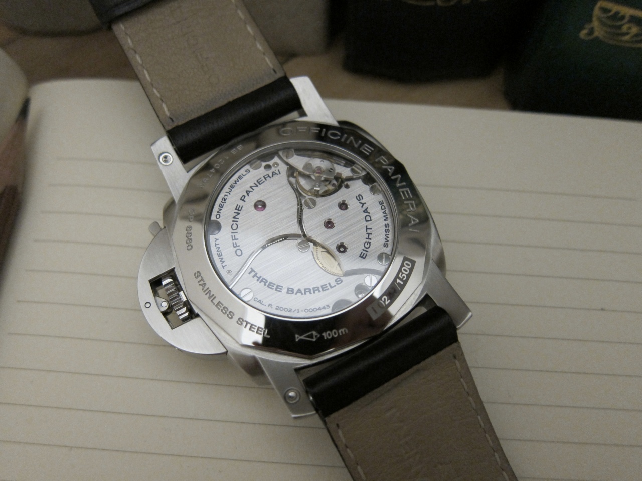 Первые часы от Панерай выпущенные на мануфактурном механизме P2002/1 в 2006 году. Одной из особенностью механизма является 8-ми дневный запас хода. Сейчас слова "Панерай", "мануфактура", "8 дней" прочно сидят в головах и явление уже, можно сказать, традиционное. Тогда - в 2006 году это был прорыв!