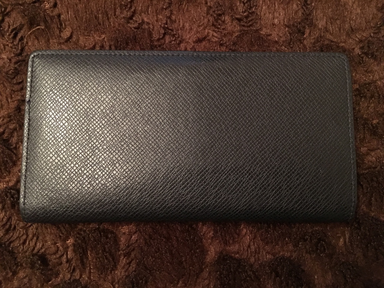 - Кожа Taiga, украшенная сдержанным тиснением логотипа LV, подкладка из зернистой кожи