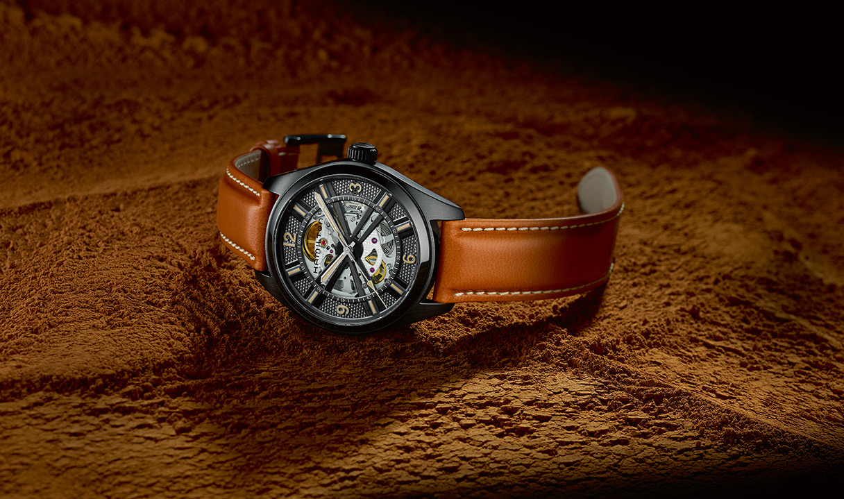 Khaki Skeleton это высокотехнологичная современная модель, в дизайне которой большое внимание уделено деталям. Скелетонизированный трёхуровневый циферблат со структурной отделкой «пчелиные соты», частично перекрывающийся лопостями X-образного пропеллера — потрясающий трехмерный шедевр. В дополнении к этому привлекающее внимание контрастное цветовое исполнение подчёркивает, что данная модель создана для мужчин с сильным характером, желающим выделиться из толпы.