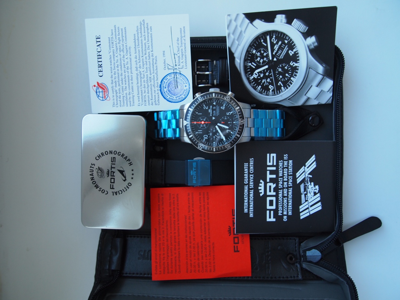 В комплекте часы на браслете, каучуковый ремешок, кожанный ремешок, доп. шпильки, 2 отвертки, фирменный кожаный чехол, документы.