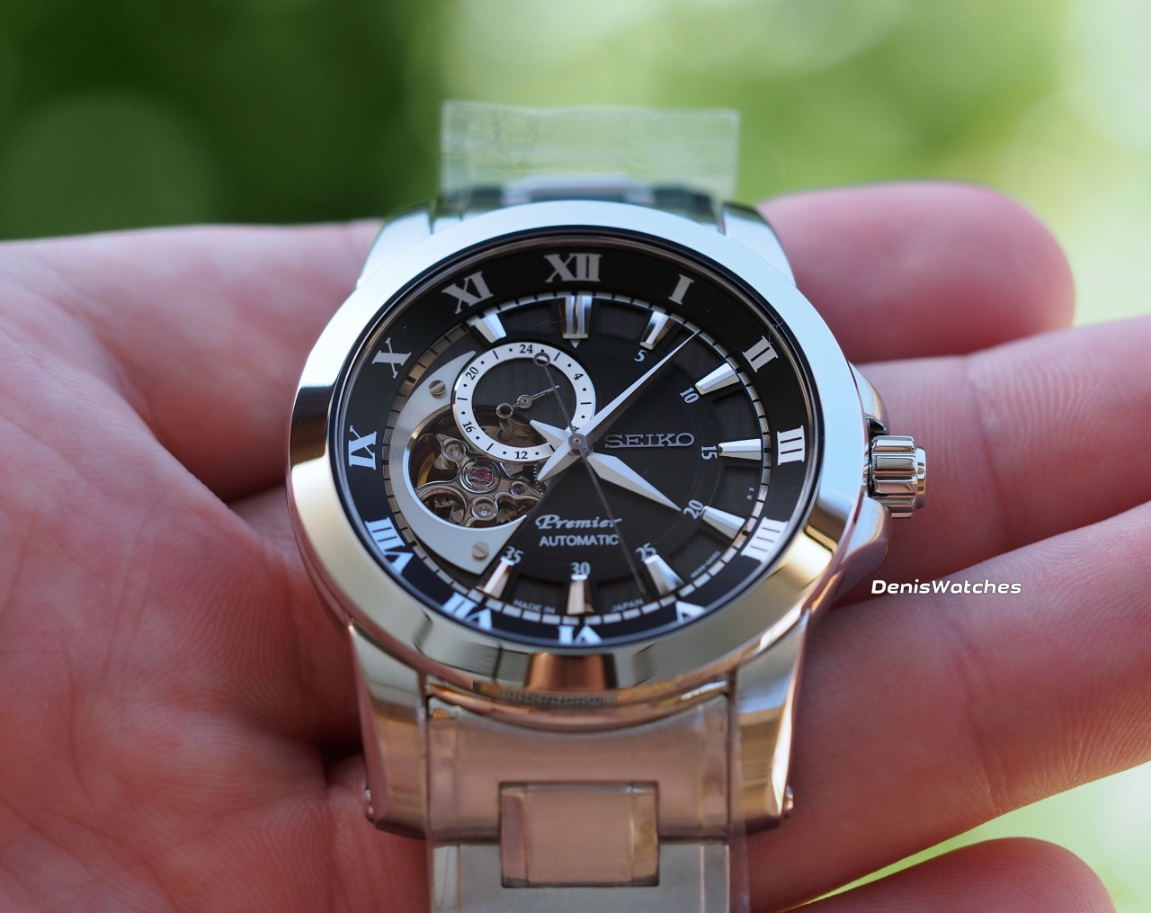 Прекрасный строгий автоматический Премьер, с отличной отделкой, открытым "сердцем" и усложнением в виде индикации времени в формате 24ч
