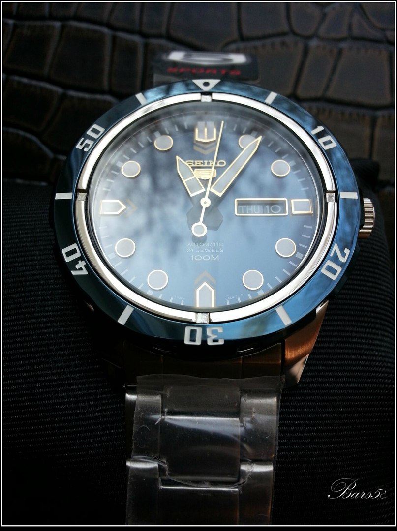 Механика с достаточно крупным диаметром (44мм без З/Г), очень красивый синий безель и бликующий циферблат (к сожалению, фото не передают должного эффекта).