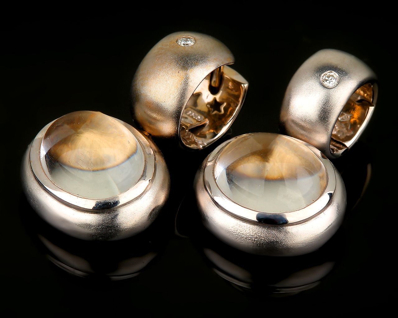 ЗОЛОТЫЕ СЕРЬГИ H.STERN С ЛУННЫМ КАМНЕМ.