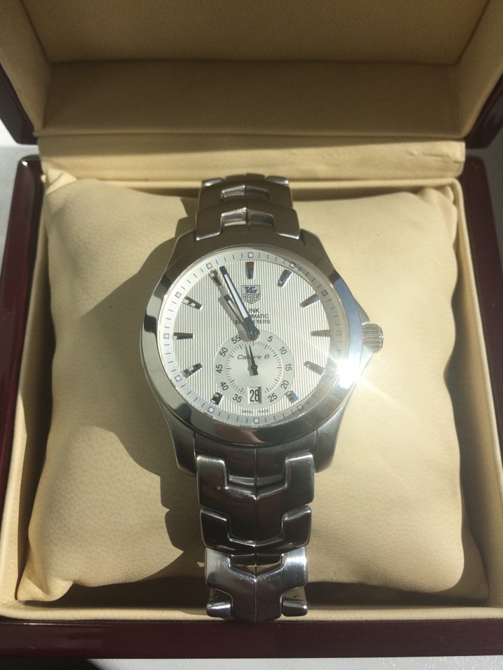 Красивая универсальная модель Tag Heuer Link Calibre 6 референс wjf211b.ba0570. Состояние часов, по факту, отличное - в полировке и обслуживании не нуждаются. Почему поставил "хорошее" не знаю Высокая амплитуда, великолепный ход порядка 2-3 секунд в сутки, часы герметичны. Косметическое состояние тоже в полном порядке. В комплекте часы, мануал, гарантийная карта, доп. звено.