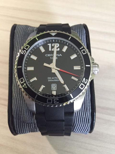 Куплены в январе этого года, использовались мало, причина продажа - покупка более дорогих часов такого же формата. Состояние отличное, есть только естественные царапины на застежке каучукового браслета. Браслет укорочен на большое запястье - 18,5 см, есть возможность его более точной регулировки перестановкой застежки.