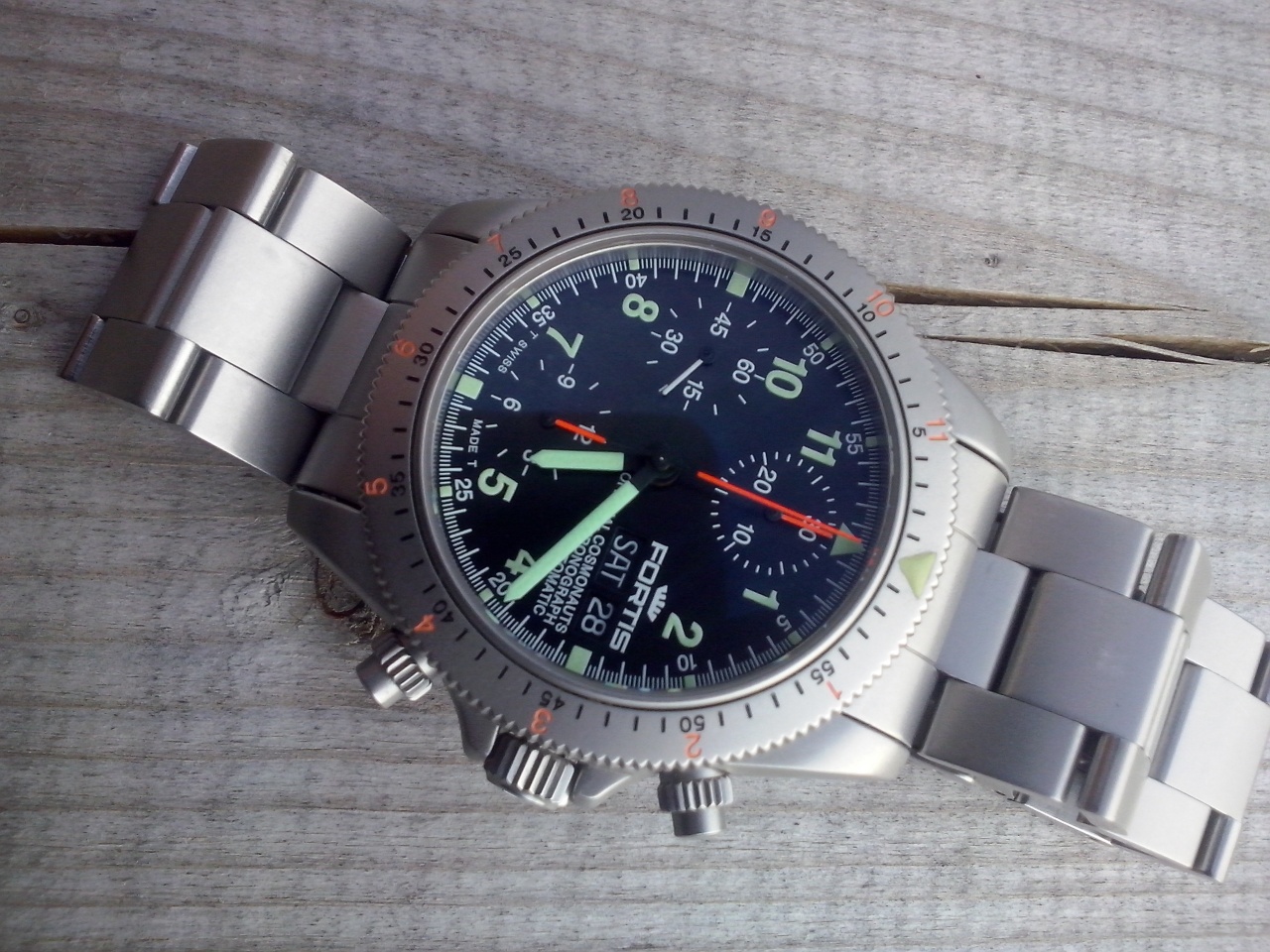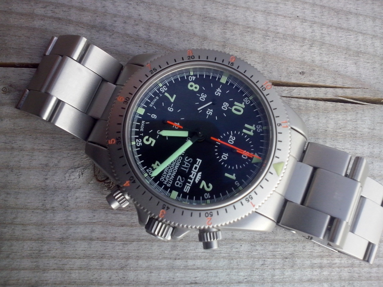 Часы идут в обычной коробке Фортис, документы "где-то", то есть вряд ли найду, Сняты два звена (в комплекте), Матерчатый ремешок (для надевания поверх скафандра)