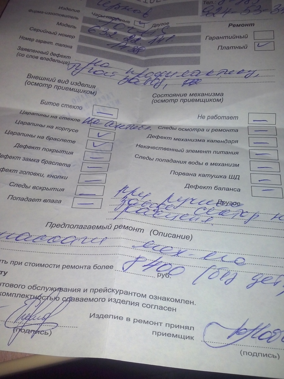 Пройден полный Репассаж в мастерской Андрея Бабанина (Точный ход), фото квитанций и распечатка точности хода "после"на фото, гарантия на проведенные работы 1 год. Забраны из мастерской 24 мая 2016г