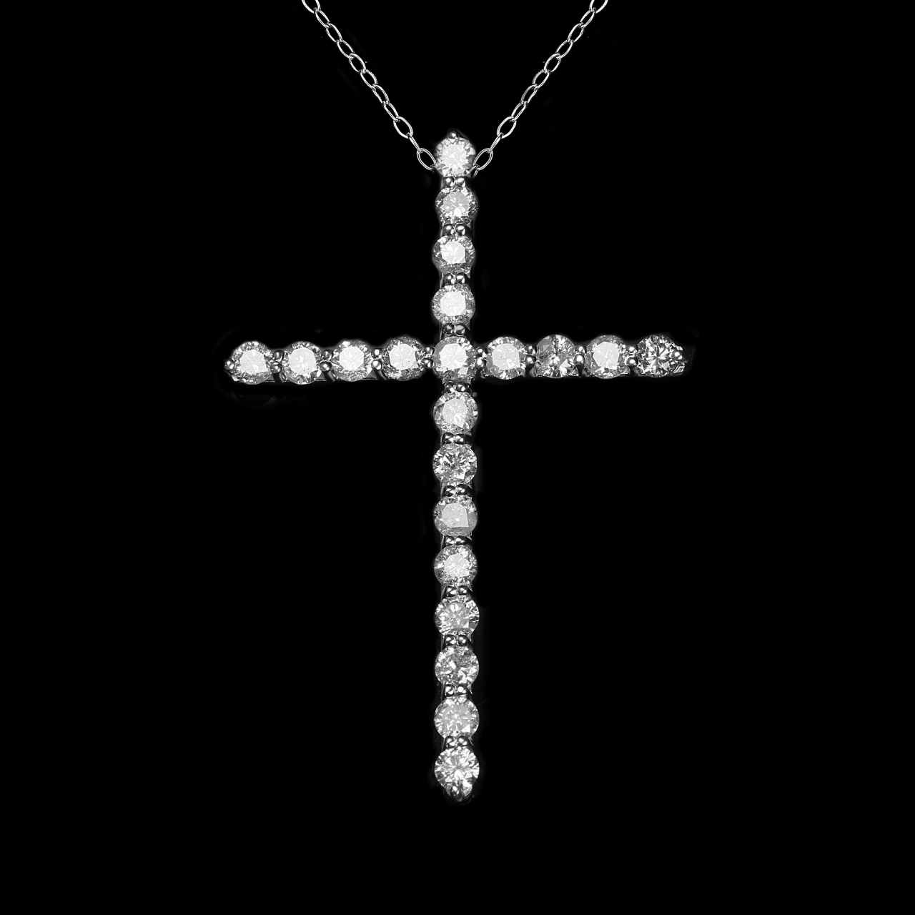 Подвеска-крест из белого золота с бриллиантами 1,05 карат