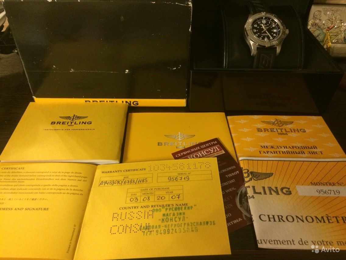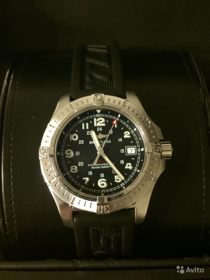 кварцевый механизм (Superquartz) 41mm,в отличнейшем состоянии на полном комплекте,куплен в Консуле в 2007 году,все бумаги,сертификаты,коробка,трэвэлкейс в комплекте,не полировались,не вскрывались,каучуковый браслет в идеале.Любые проверки в официальных СЦ Breitling за Ваш счет.