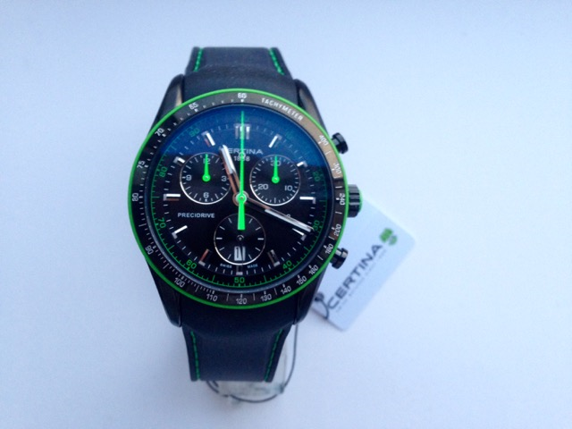 Многофункциональный хронограф с счетчиками часов, минут, секунд и 100-х долей секунд, люминесцентное покрытие индексов, часовой и минутной стрелок, индикация даты и вынесенная секундная стрелка на "6" часов, тахиметрическая шкала.