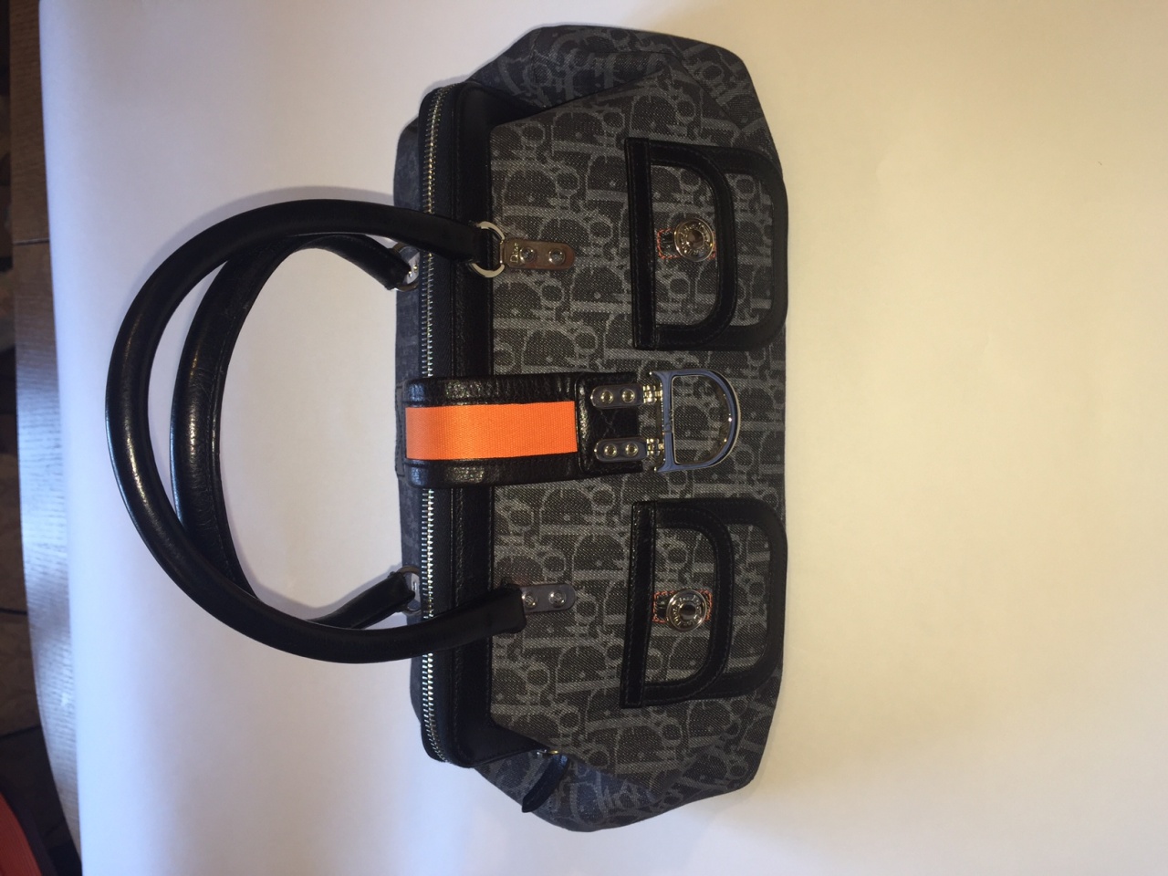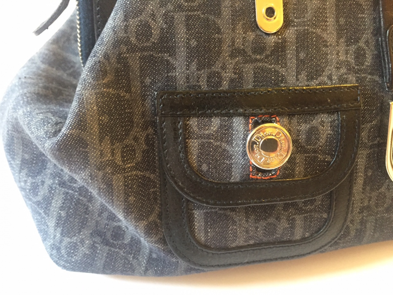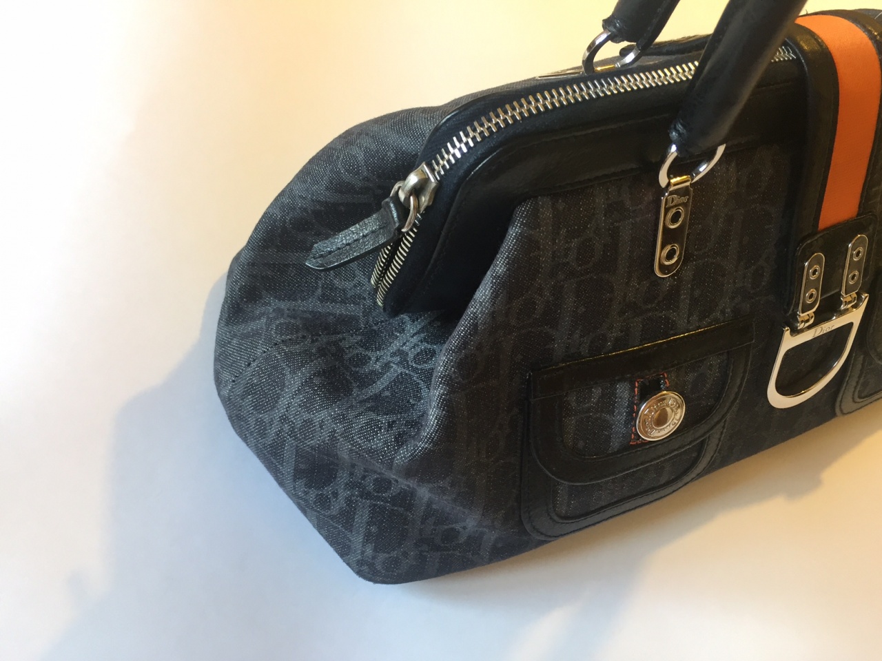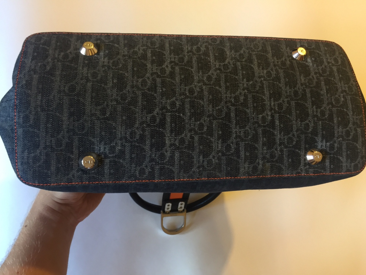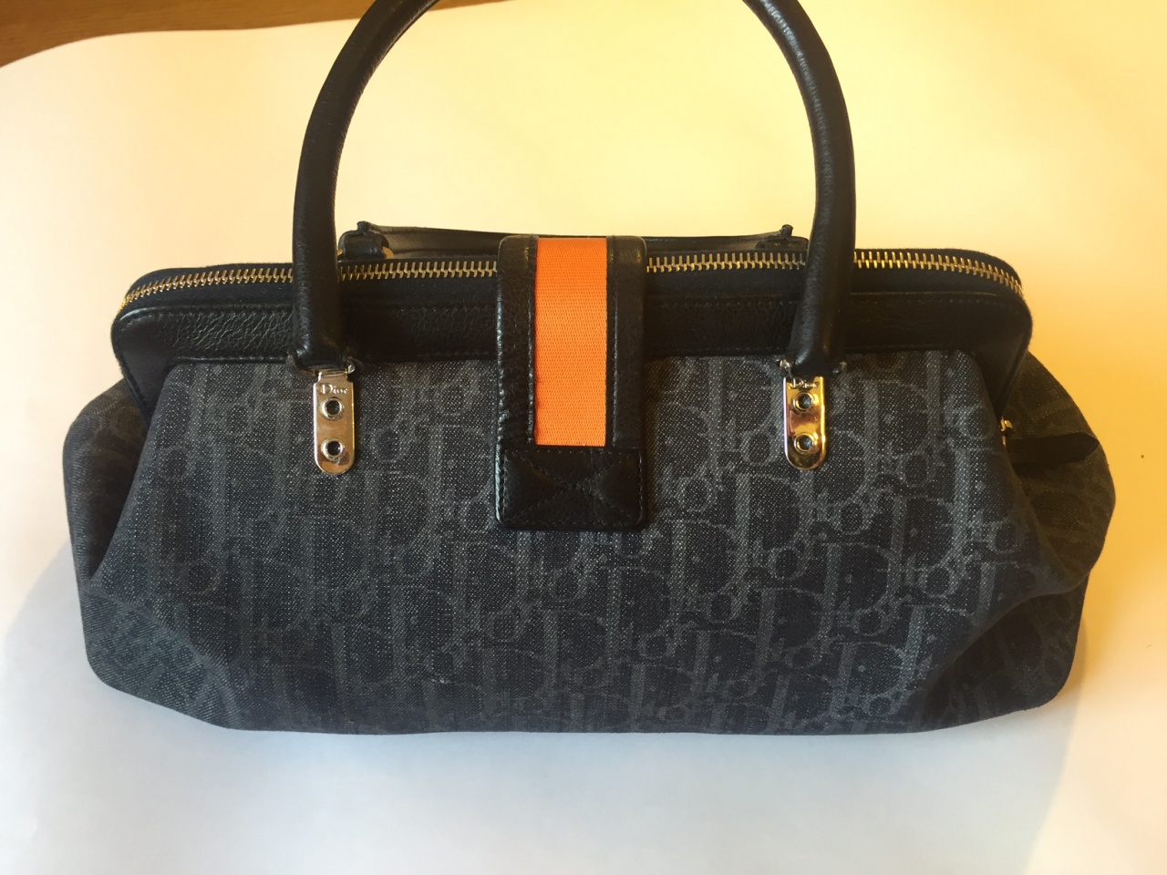 Сумочка-саквояжик из плотного денима с узором-монограммой Christian Dior. оригинал, Отделка и ручки натуральная кожа.
