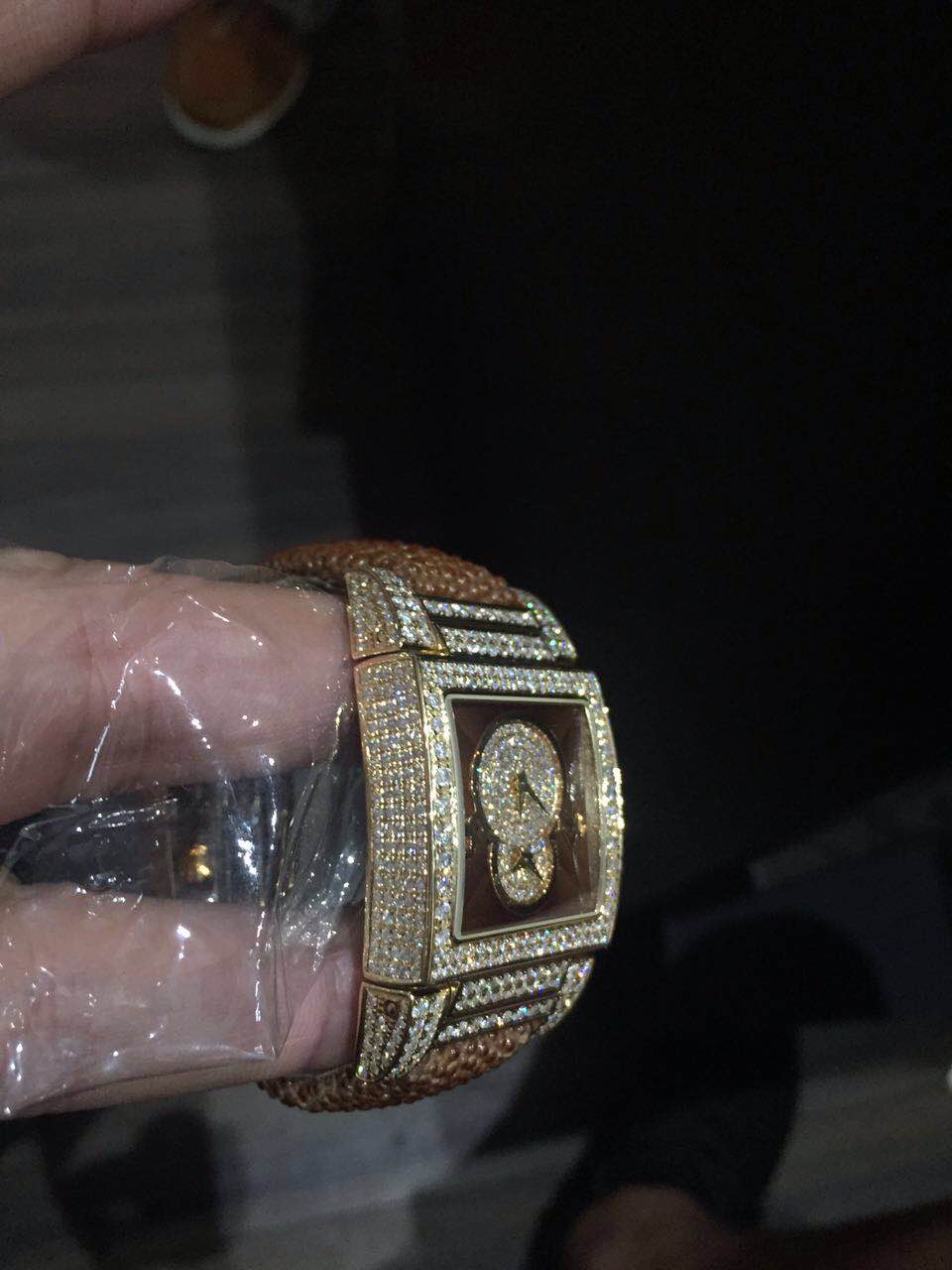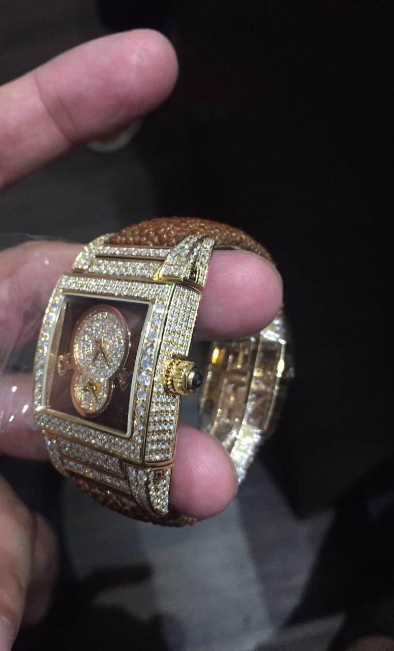 Кожа ската, розовое золото,бриллианты.
