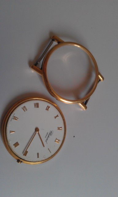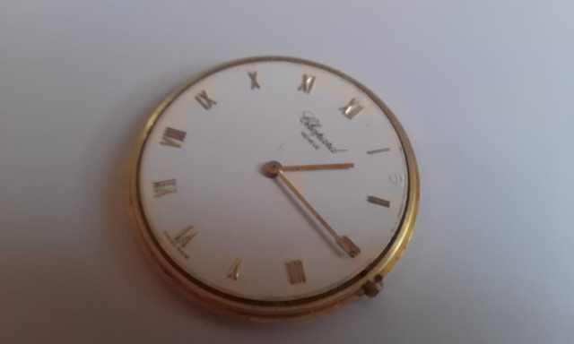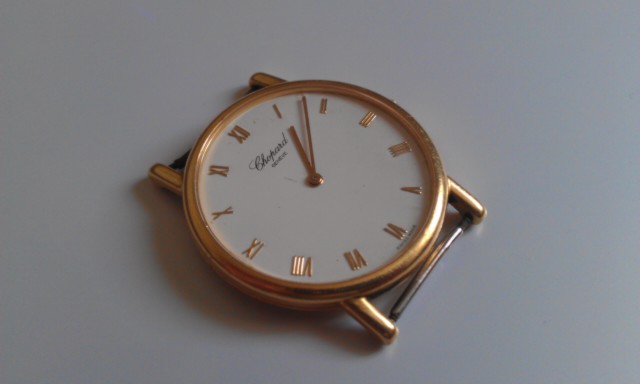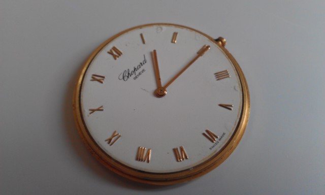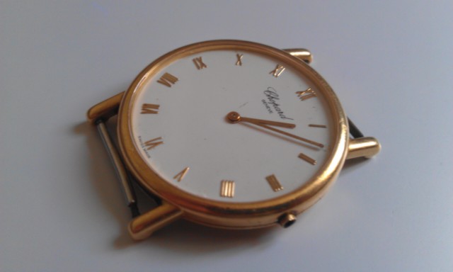 Золотые механические часы Chopard Classic ref.16/3154. Корпус 750 пробы, диаметр 34мм, механизм 18 камней. На циферблате небольщие следы реставрации, неакуратно разбирали, сильно в глаза не бросается. Нет части заводного ключа, ключ составной, одна часть в механизме, другая часть в корпусе, соединяются через квадрат и шпильку. Утеряна наружная часть с заводной головкой, на последней фотографии, из интернета, видна утеряная деталь. Задавайте вопросы, по запросу сделаю дополнительные фото. Торг.