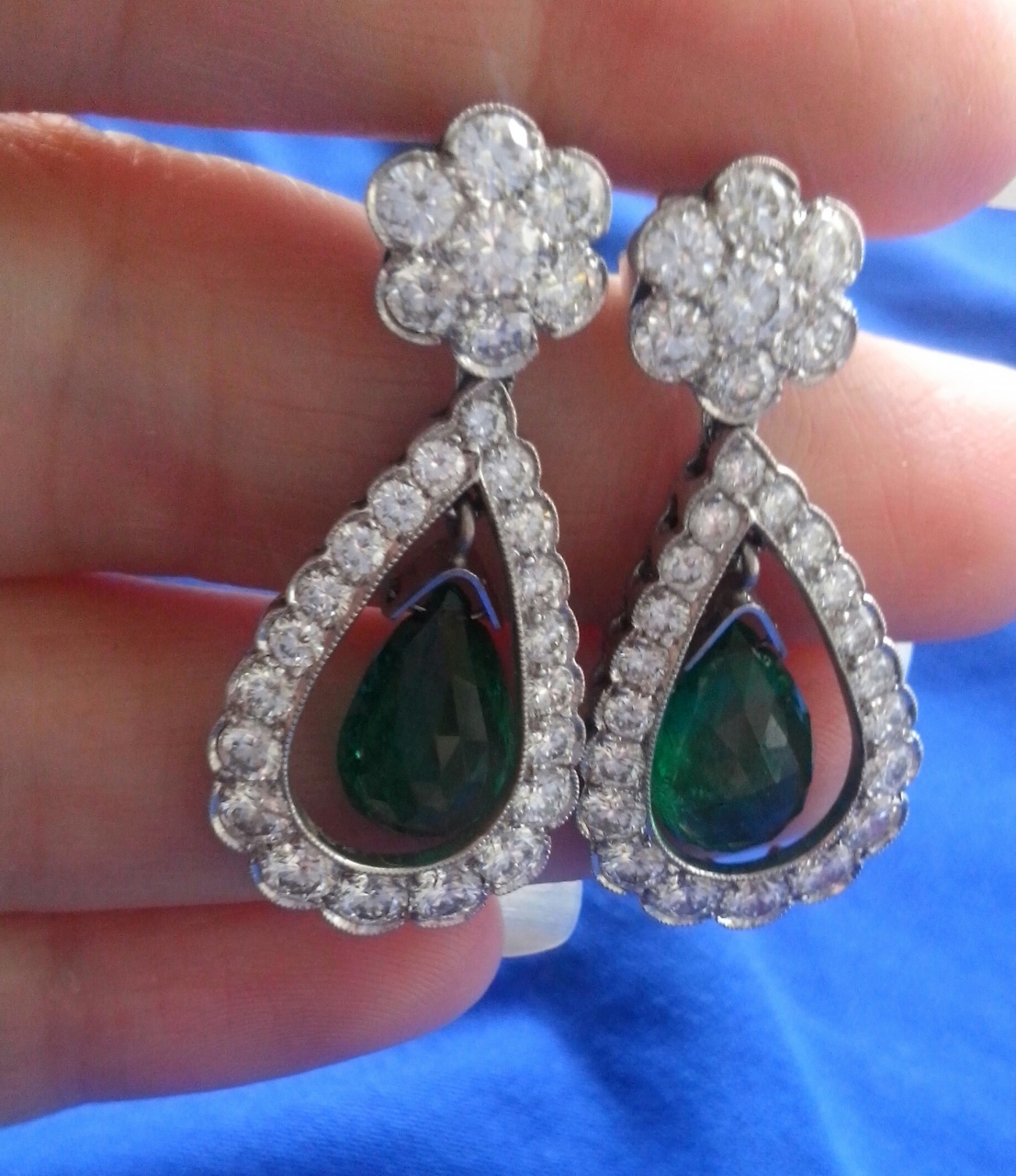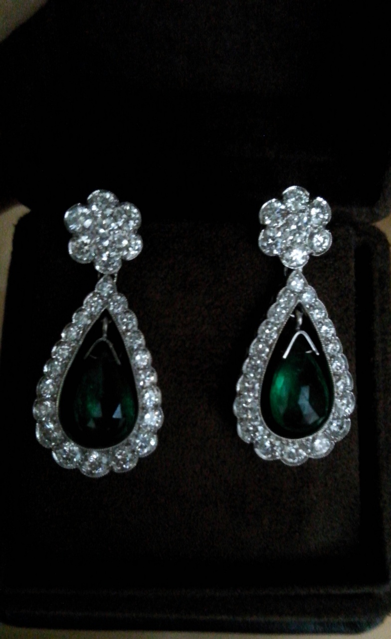 СЕРЬГИ С БРИЛЛИАНТАМИ 4 КАРАТА И ИЗУМРУДАМИ