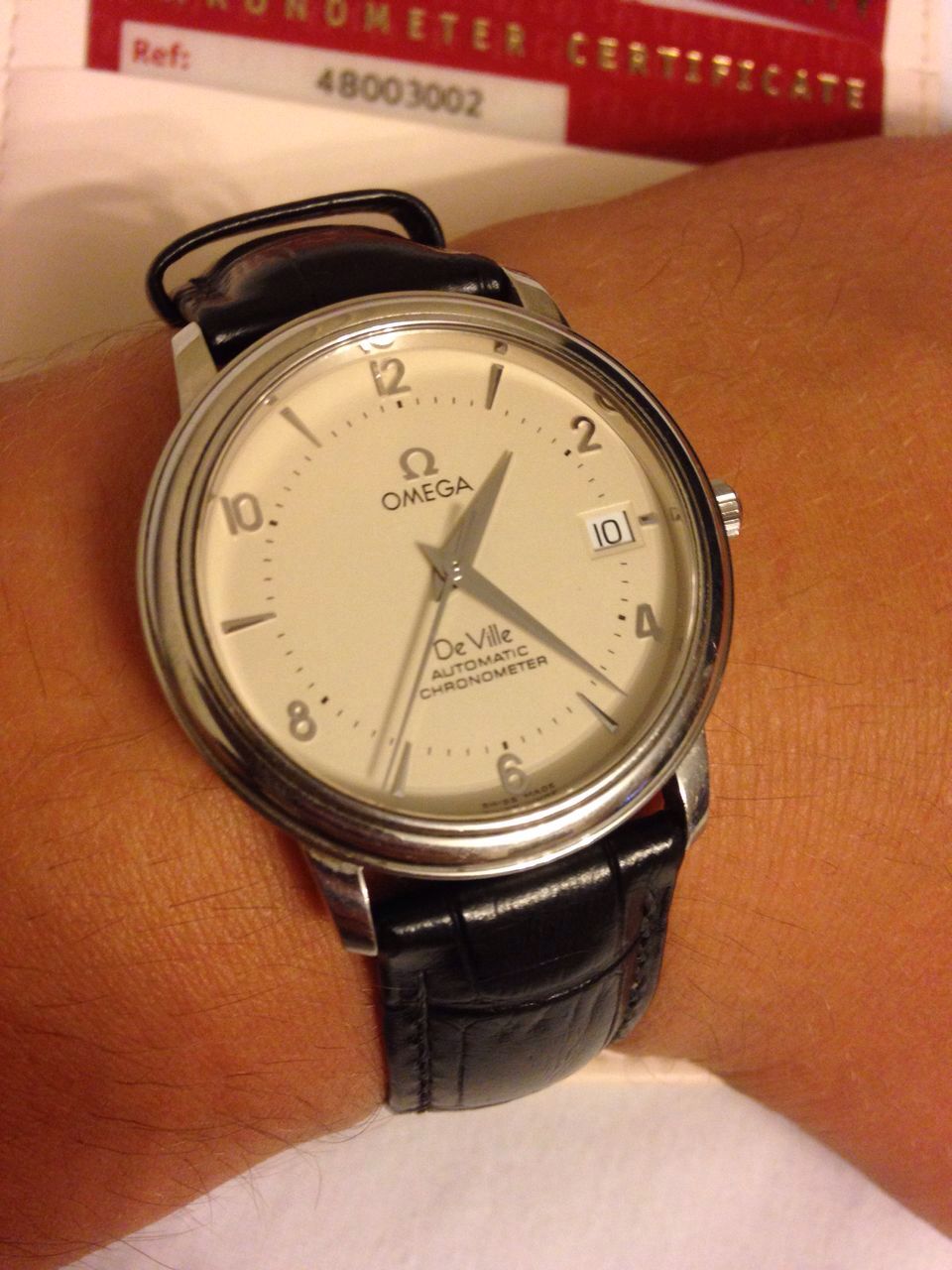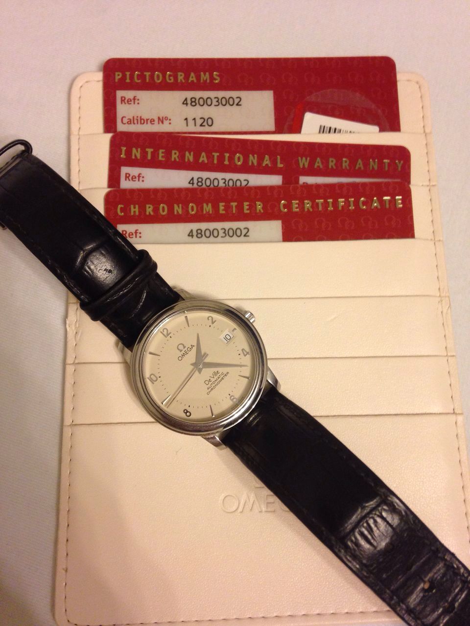 Костюмная классика от уважаемого брэнда - Omega De Ville Chronometer. Механические с автоподзаводом, сертифицированный хронометр, калибр omega 1120. Часы в хорошем внешнем состоянии. Состояние B указано по причине замены оригинального ремня на неоригинальный, но хороший ремень Hirsch и предстоящего репассажа.