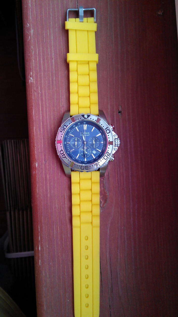 Водозащита 100 м. На черном силиконовом ремешке, желтый СИЛИКОНОВЫЙ РЕМЕШОК В ПОДАРОК.