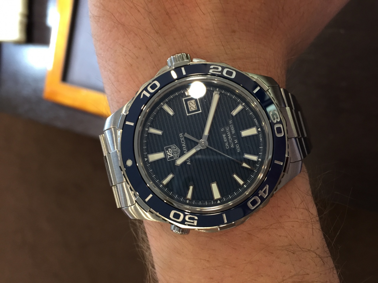 Примерял полосатый таг, слишком велик, ну и опять же, не очень понравился браслет и слухами про резьбу.