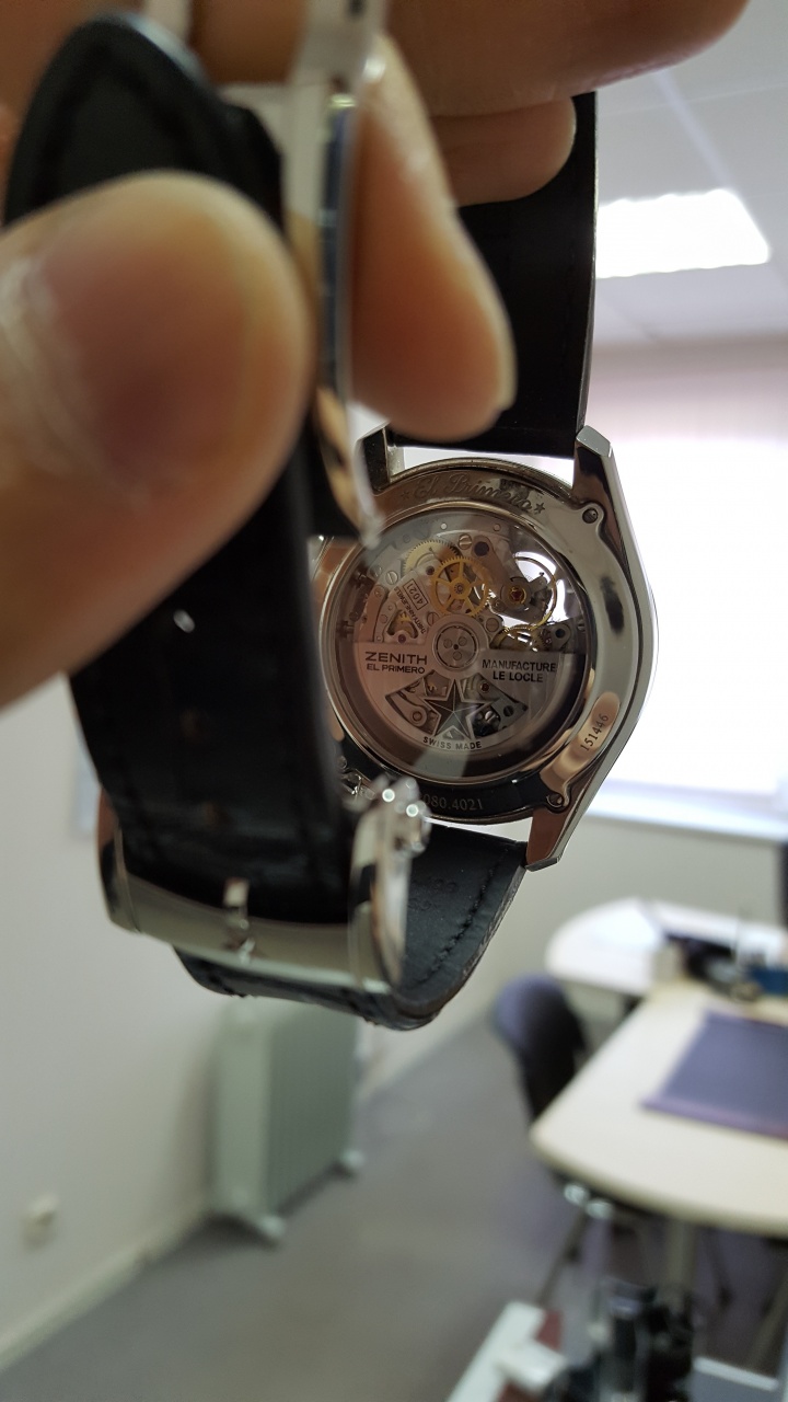 Материал корпуса: Стальной; Размер корпуса: 42 мм; Тип механизма: Механический хронограф с автоподзаводом; Калибр: El Primero 4021P; Запас хода: 50 часов; Функции: часы, минуты, секунды, запас хода, тахиметр; Водонепроницаемость: 100 м; Браслет: Кожа аллигатора; Цвет ремешка: Черный