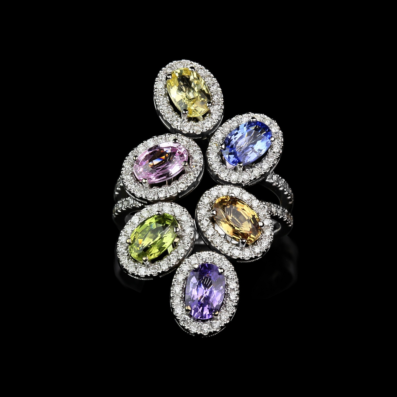 В продаже великолепное кольцо из белого золота с сапфирами 4 карата и бриллиантами 1 карат.