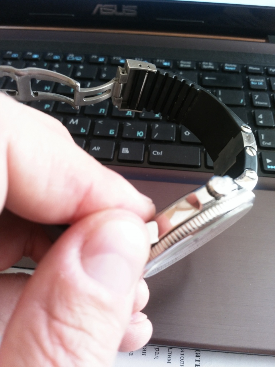 Ремешок укорчен для запястья 18 см., бакля немного поцарапана. Сфоткал прямо с руки, по запросу сделаю и вышлю доп. фото