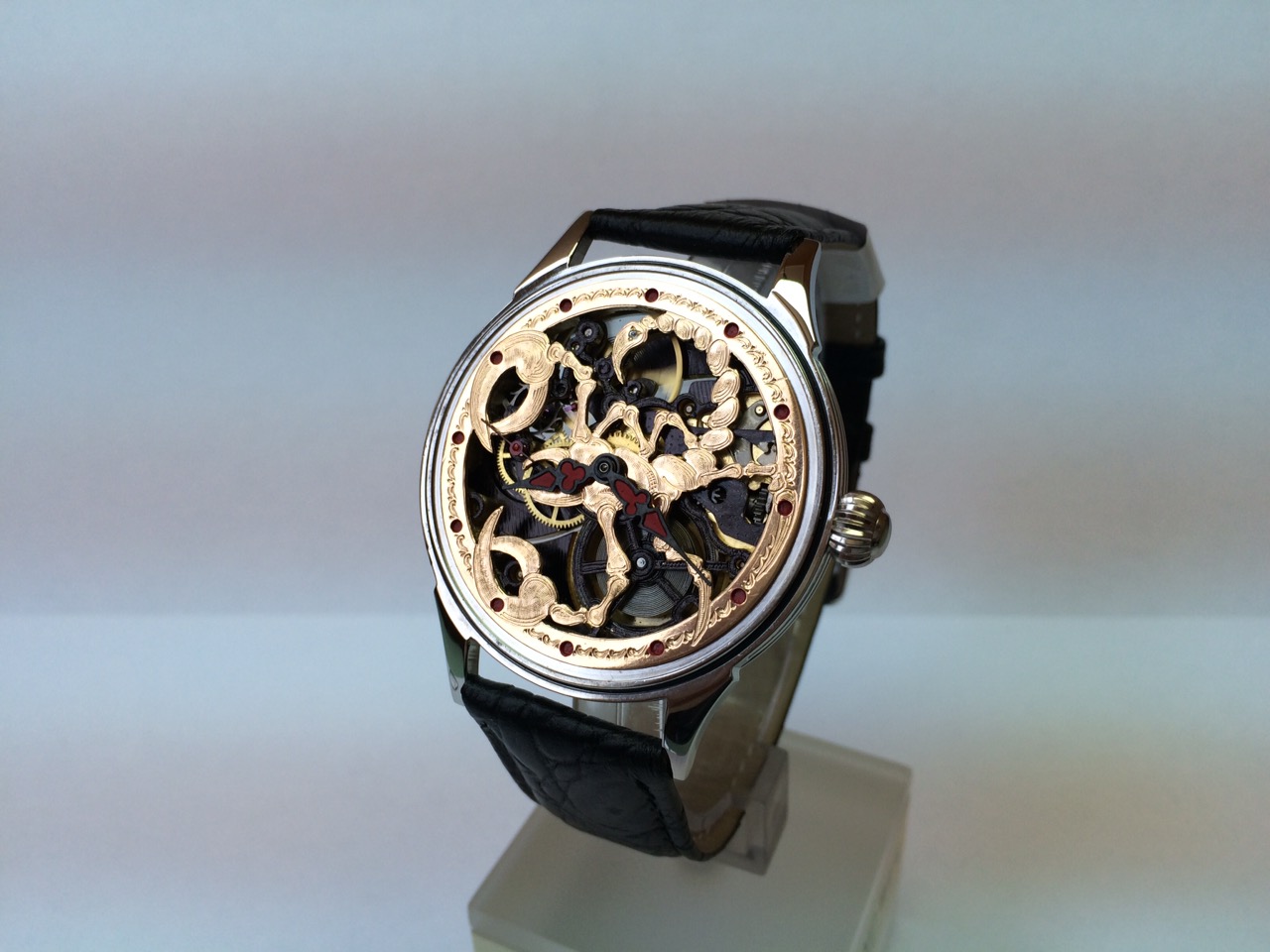 Часы ручной работы - Скелетон кропотливой ручной работы штихелем (никаких станков ЧПУ и прочих помощников), на базе советского механизма с ручным заводом на 18 рубиновых камнях.