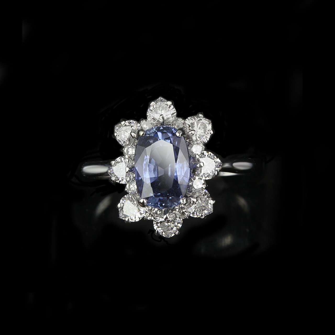Кольцо из белого золота с сапфиром 2,33 карат и бриллиантами 0,85 карат (сертификат GIA)