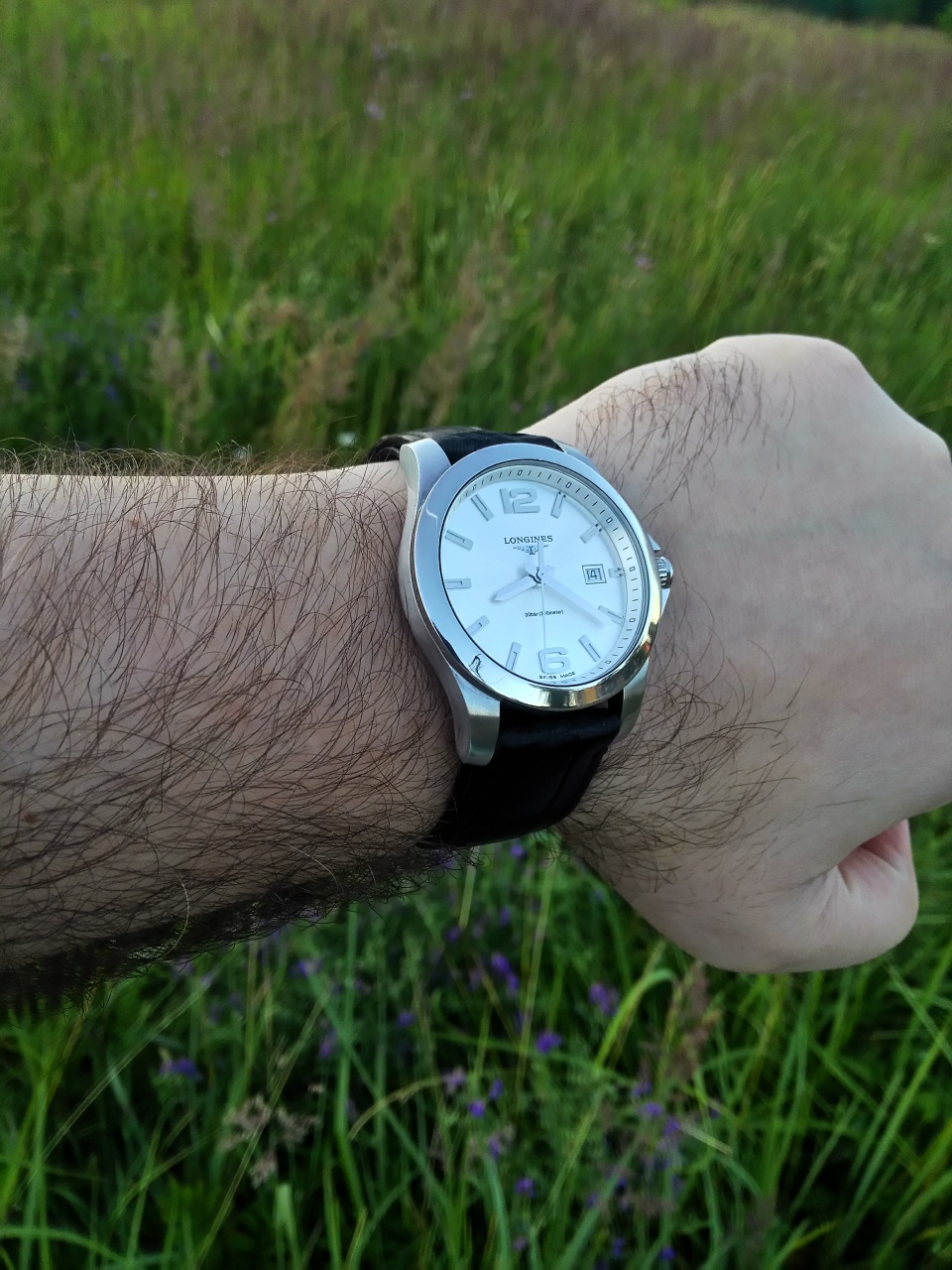 Часы после профилактического обслуживания. Их почистили, смазали, заменили элемент питания, старый ремешок из телячий кожи утратил себя и тоже был заменен на новый ремешок из кожи крокодила, ручной работы.