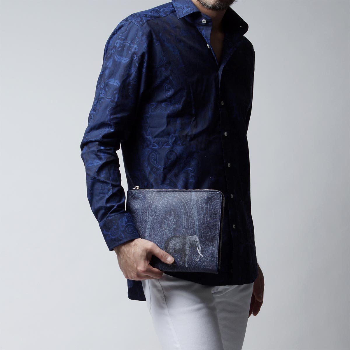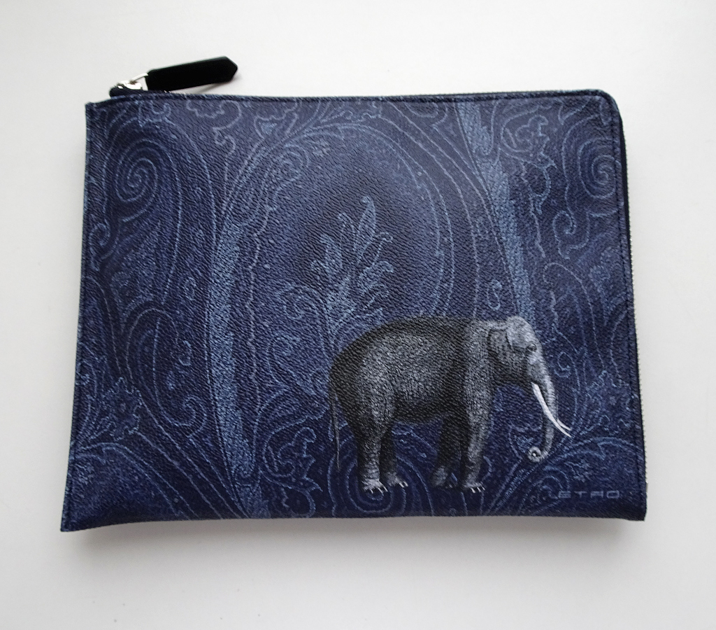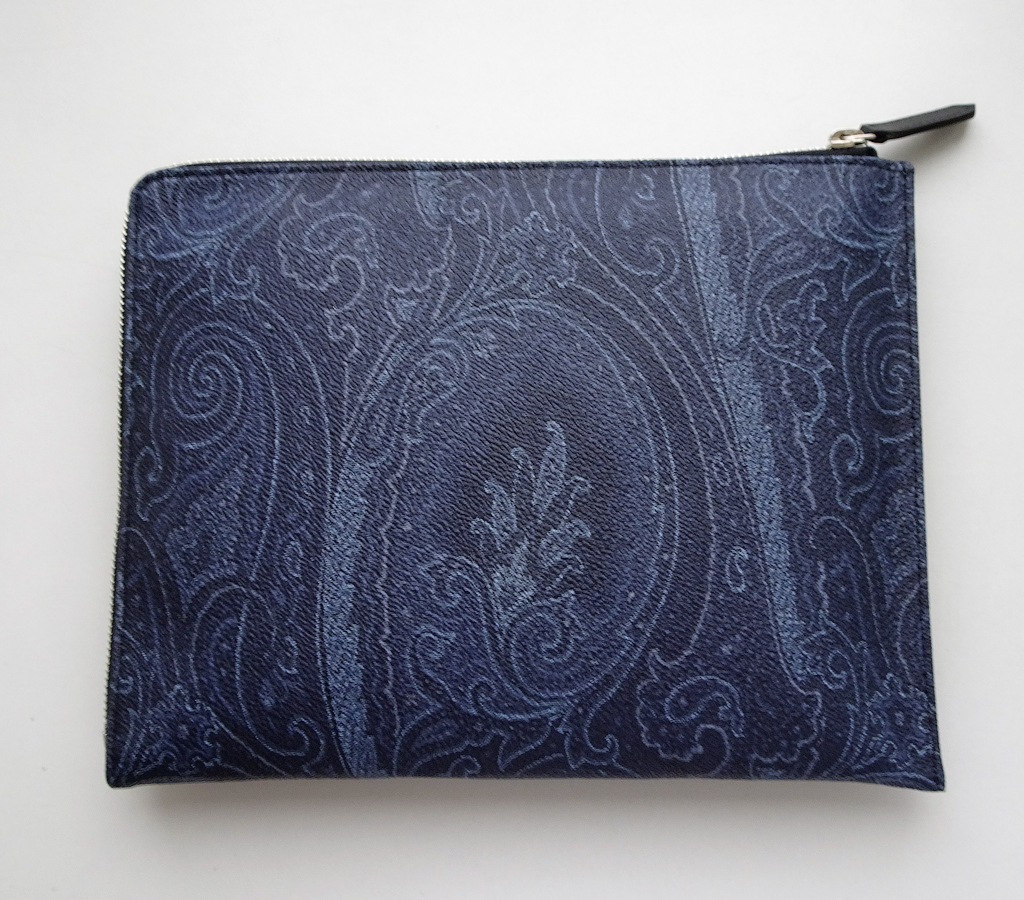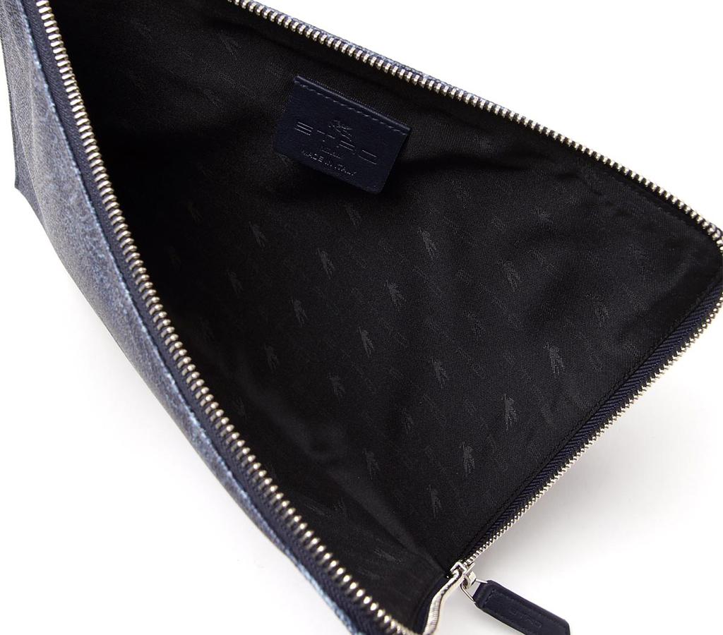 Материал - канва с узором в синих тонах, элементы отделки из натуральной кожи.