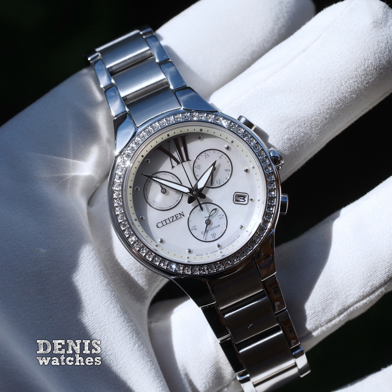 Элегантный женский хронограф c перламутровым циферблатом и кристаллами Swarovski на безеле!