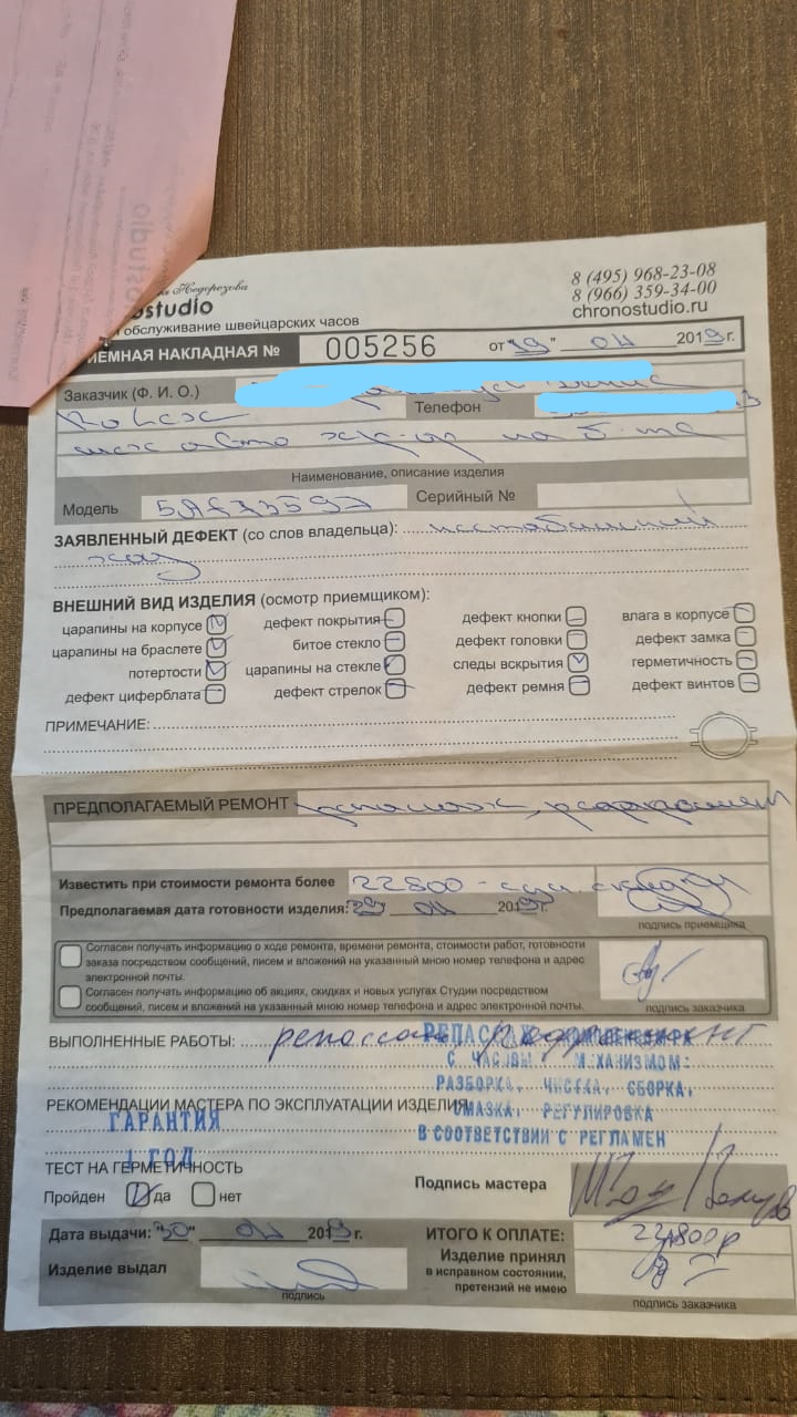 Итак, спустя 8 лет после покупки часов Rolex Daytona, было принято решение их освежить. В апреле 2019 часы были отданы на репассаж, который и был проведен вышеуказанной конторой за неделю.