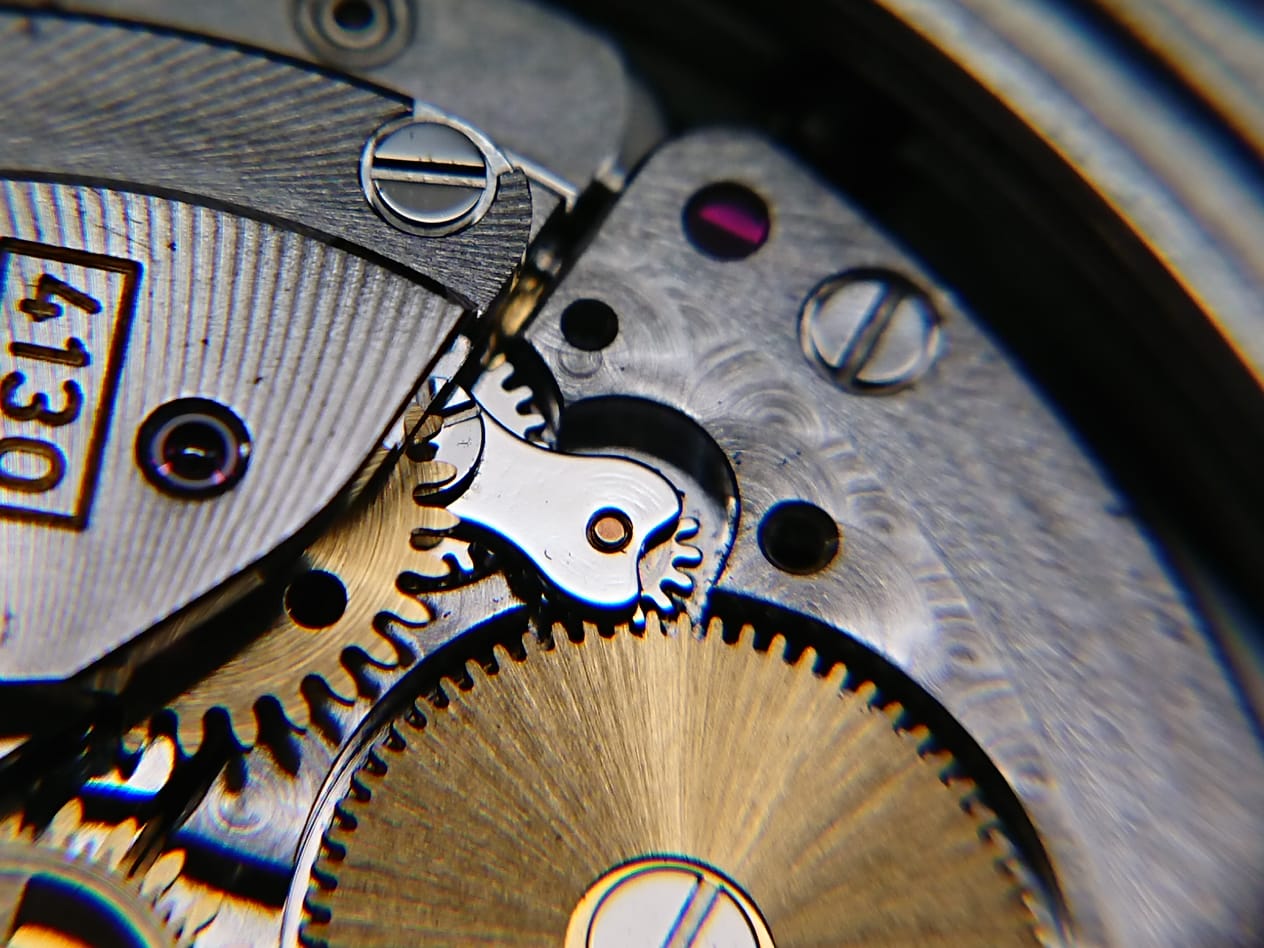 Спасибо Игорю – его специалист часы почистил, и сумел даже поправить одну из стрелок. Но, при попытке выставить баланс обнаружилось что ребятки из Chronostudio с ним тоже поработали на славу – рычаг стоит в крайнем положении и упирается в мост, из-за чего вывести выкачку не представляется возможным. Со спиралью тоже не все гладко: