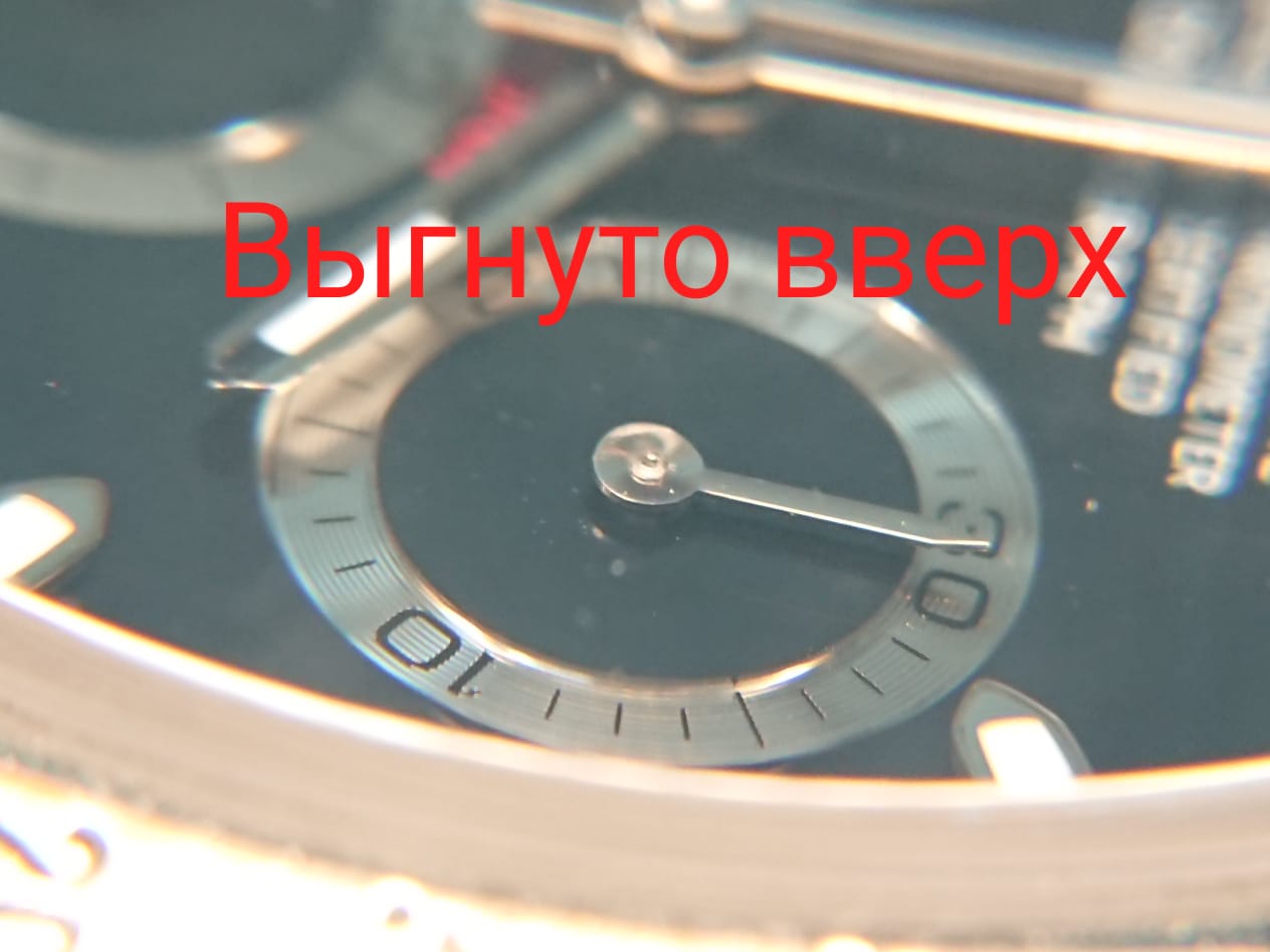 2. Шляпки стрелок оказались искривлены, при этом правую стрелку минутного счетчика «мастер» просто вырвал, а трубочка, насаживаемая на ось, и плоскость самой стрелки были расклепаны.