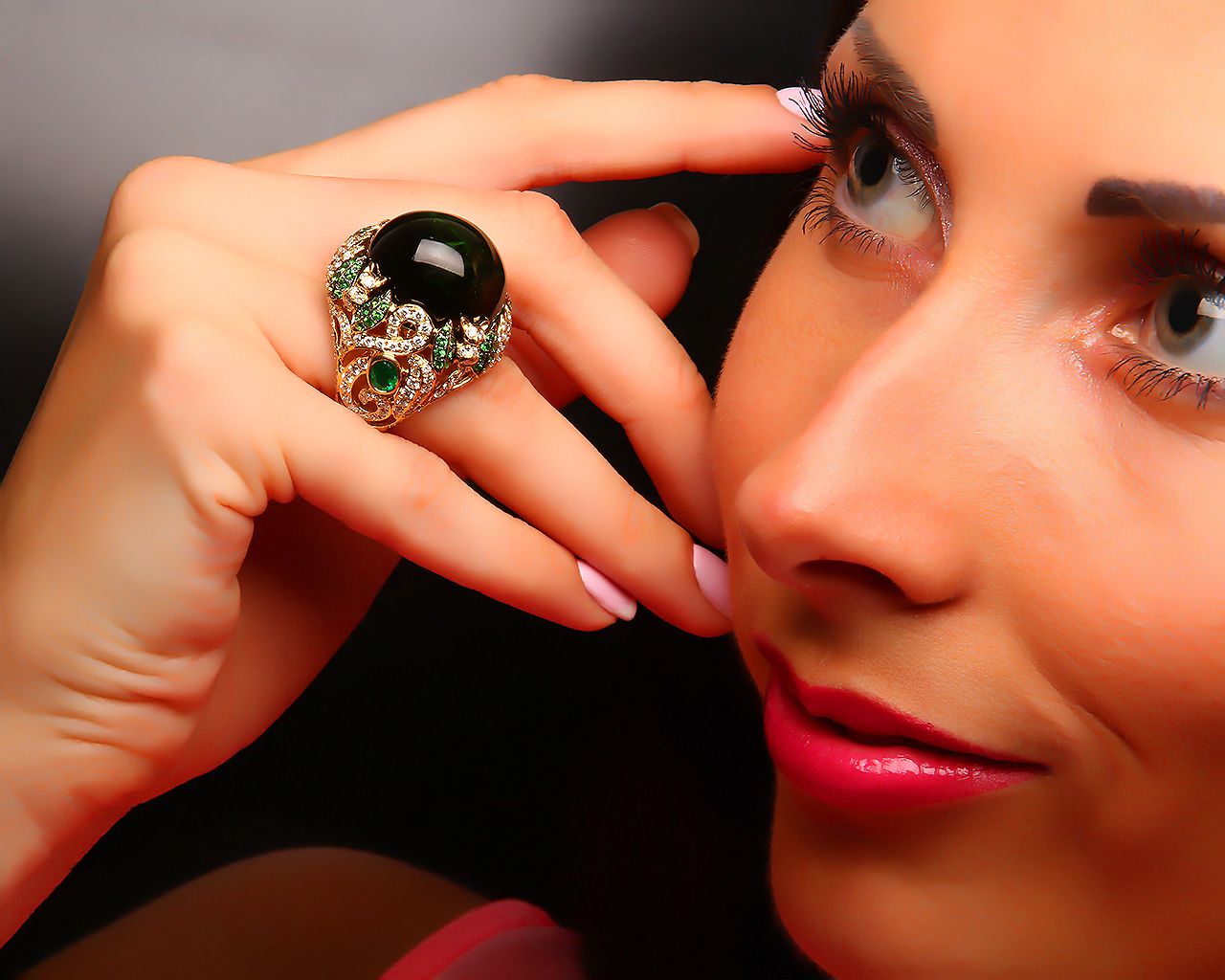 Бриллиантовое кольцо с хризолитом 51.83ct.