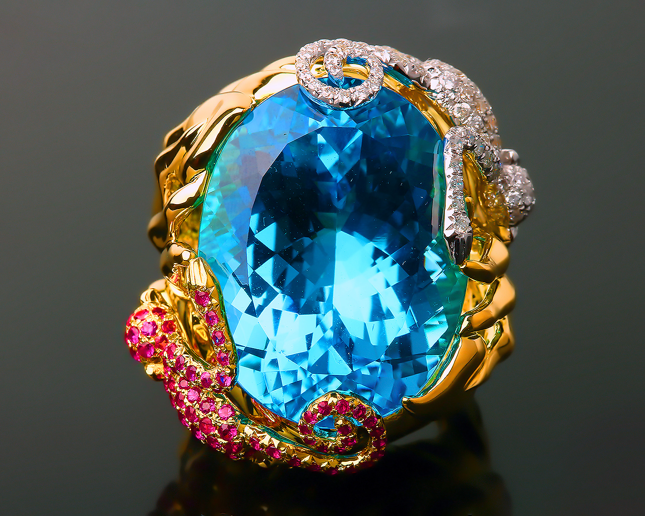 Бриллиантовое кольцо с топазом 51.99ct.