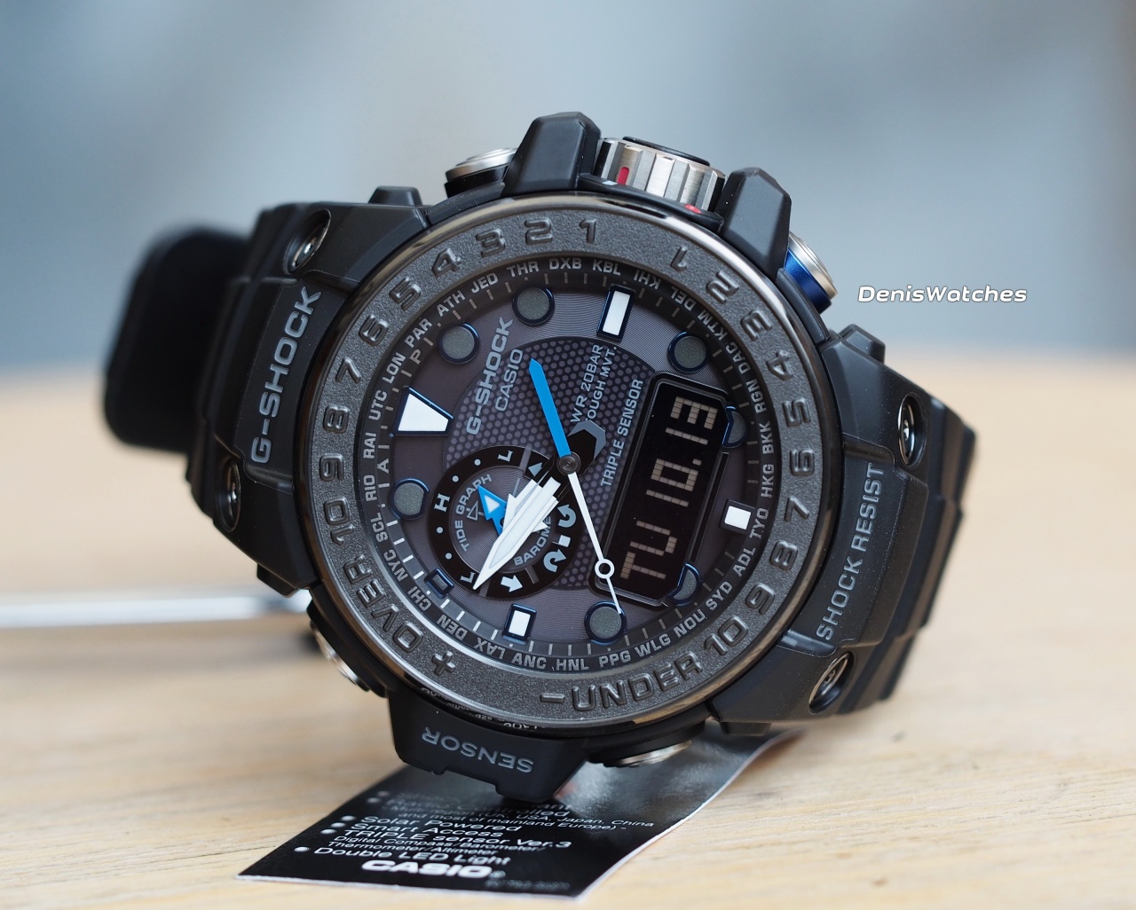 GulfMaster были разработаны специально для активного отдыха. Это первая модель из серии G-Shock, у которой есть комбинированный дисплей и тройной сенсор, т.е. присутствуют барометр, термометр и компас.